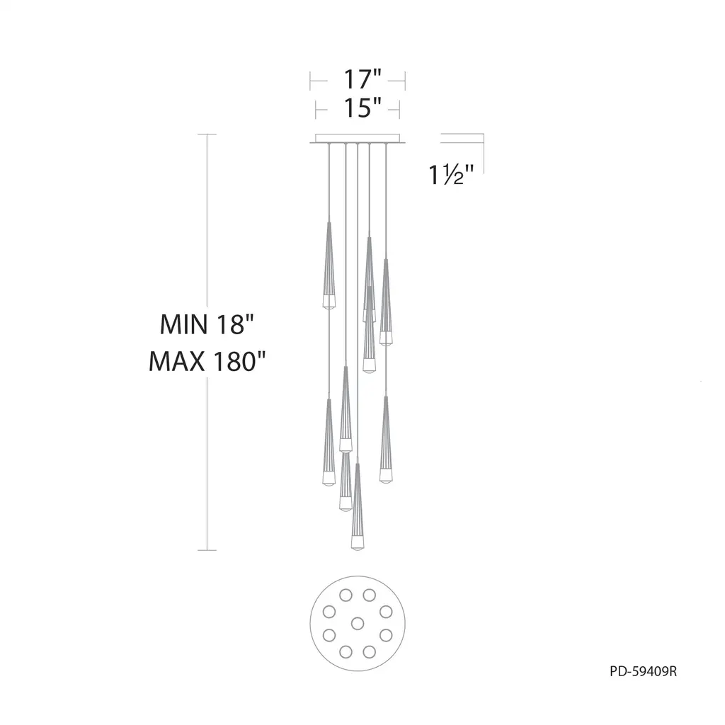 Quill Led 17 Inch Black Multi-Light Pendant Ceiling Light, Dweled