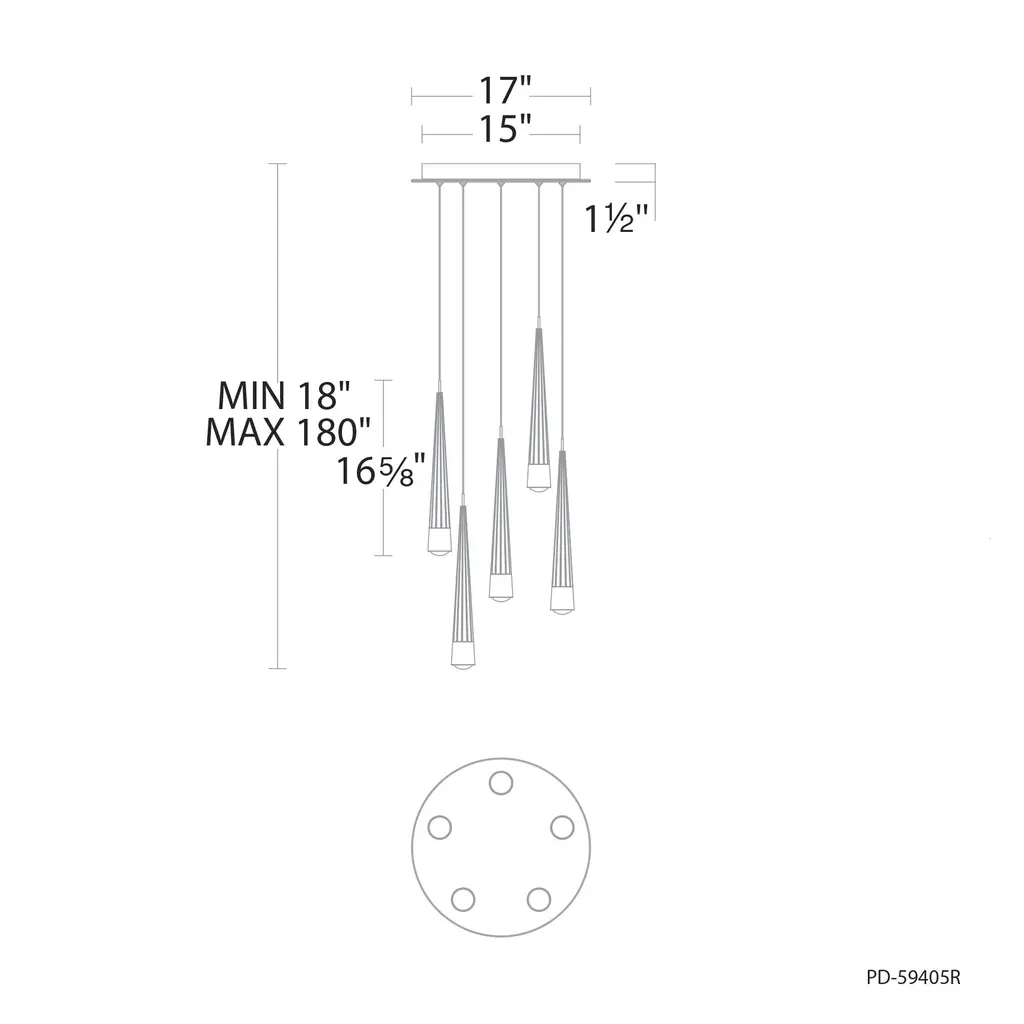 Quill Led 17 Inch Chrome Multi-Light Pendant Ceiling Light, Dweled