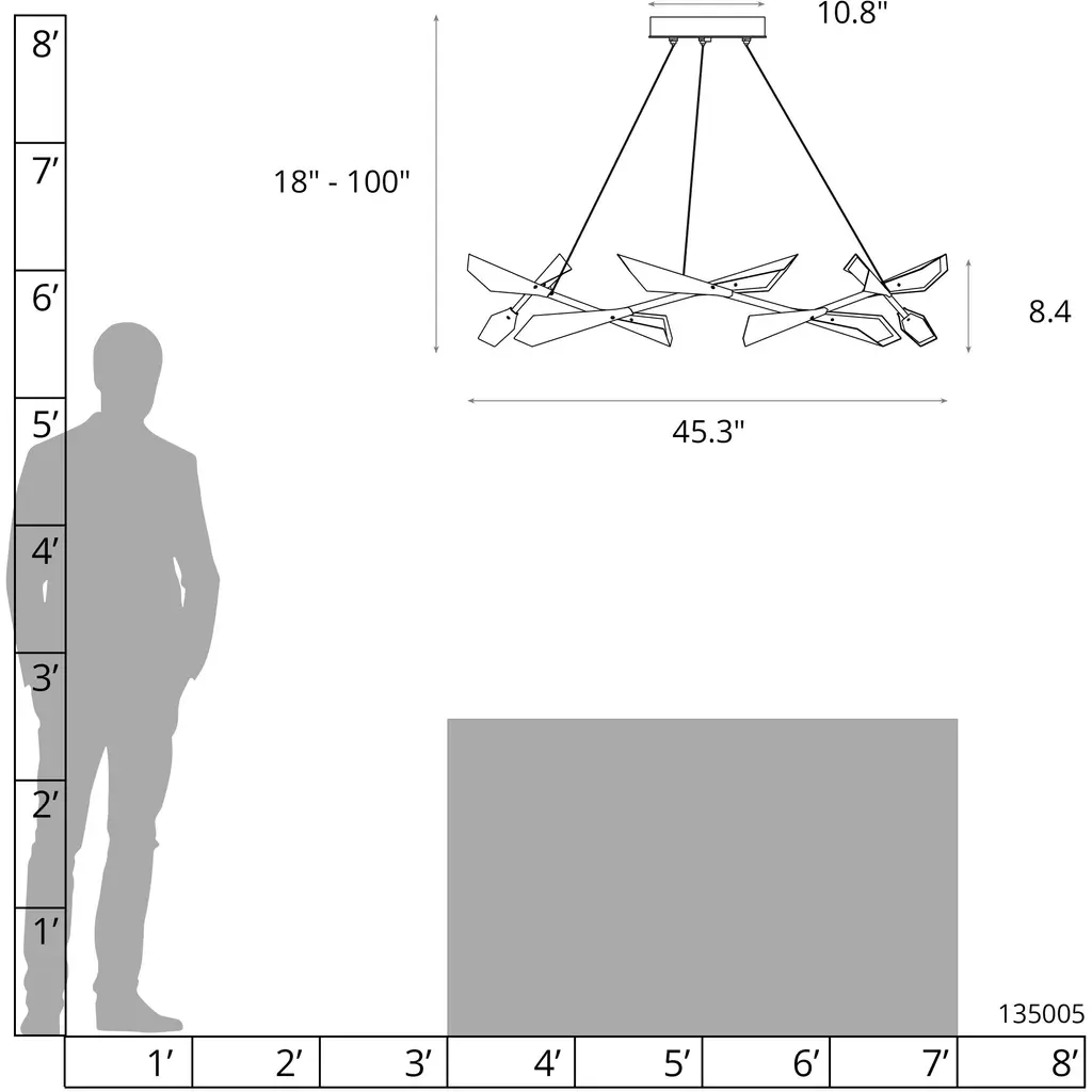 The Quill links together unique geometry in a circular pendant form reminiscent of a crown of laurels. Adjusting the cables allows for the pendant to hang on a level plane or on angle. Available as a single or two-tone fixture: Choose a base item finish for the body and an accent finish for the metal shades.
