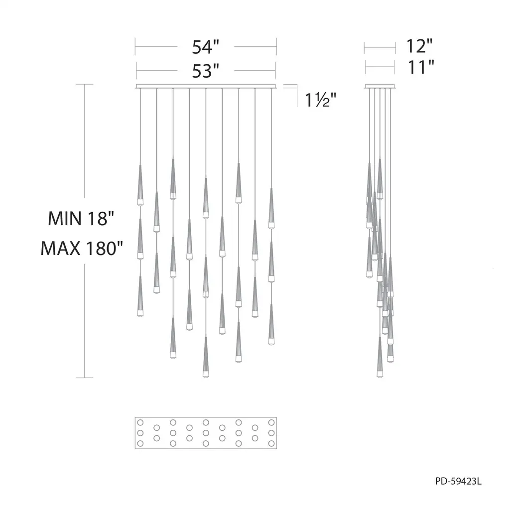 Quill Led 8.88 Inch Black Multi-Light Pendant Ceiling Light, Dweled