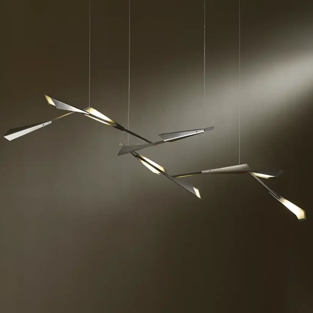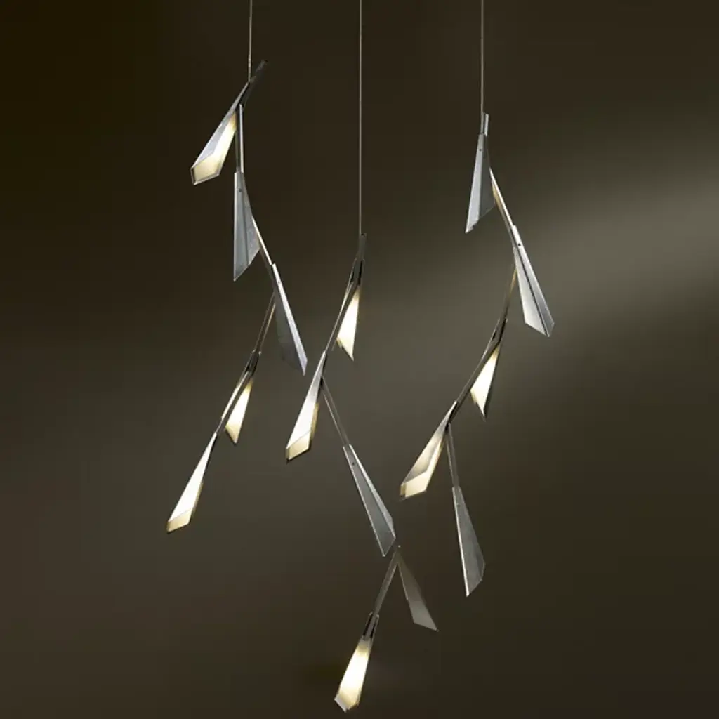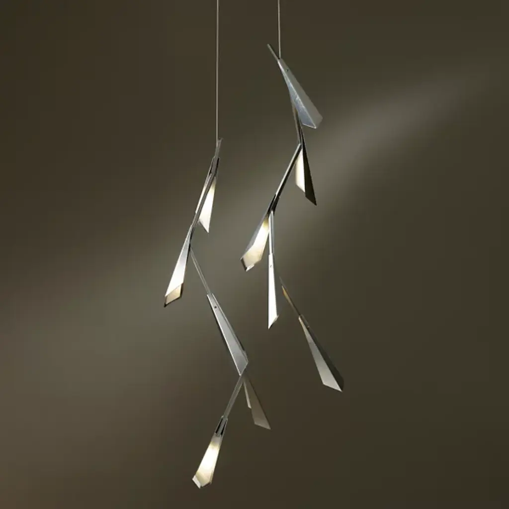A modern lighting sculpture that gets right to the point. The Hubbardton Forge Quill LED Pendant offers myriad possibilities for designing a custom look. Five folded aluminum shades cascade one after another, suspended from field-cuttable cable that allows for infinite configurations. Hang multiple fixtures vertically or horizontally (or somewhere in between) to create a uniquely deconstructed chandelier.