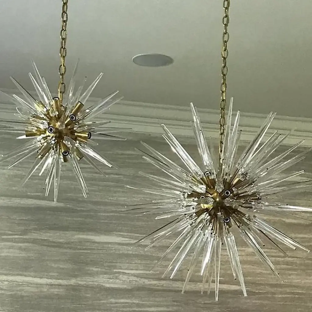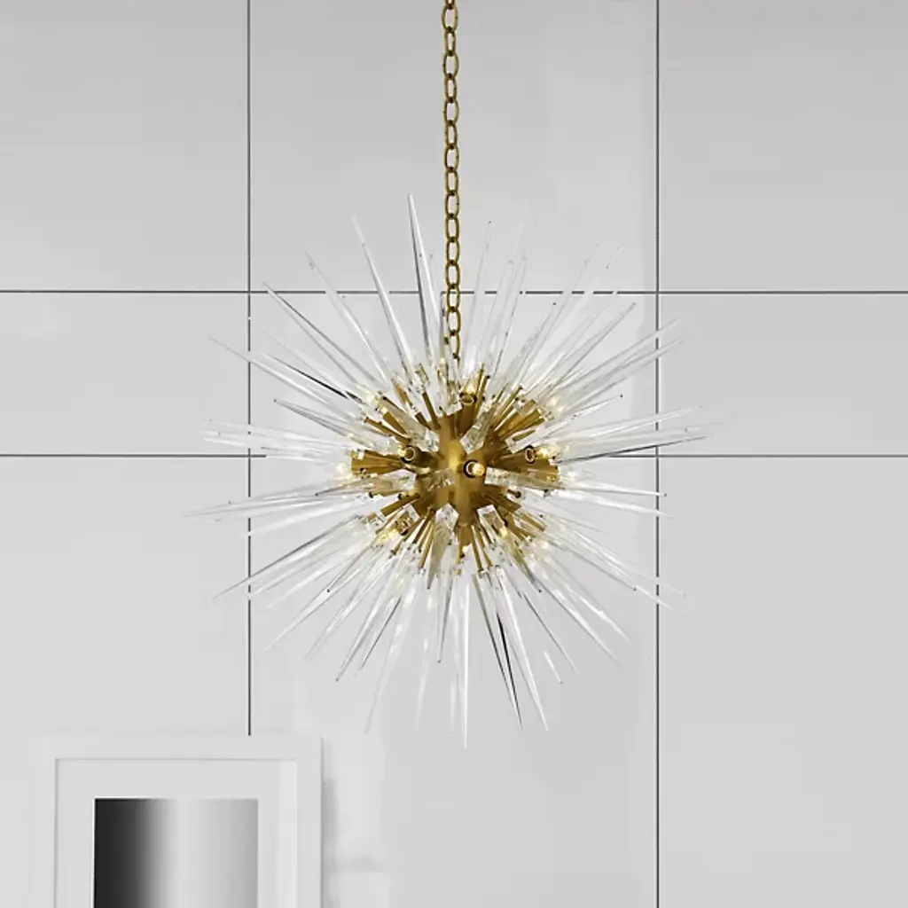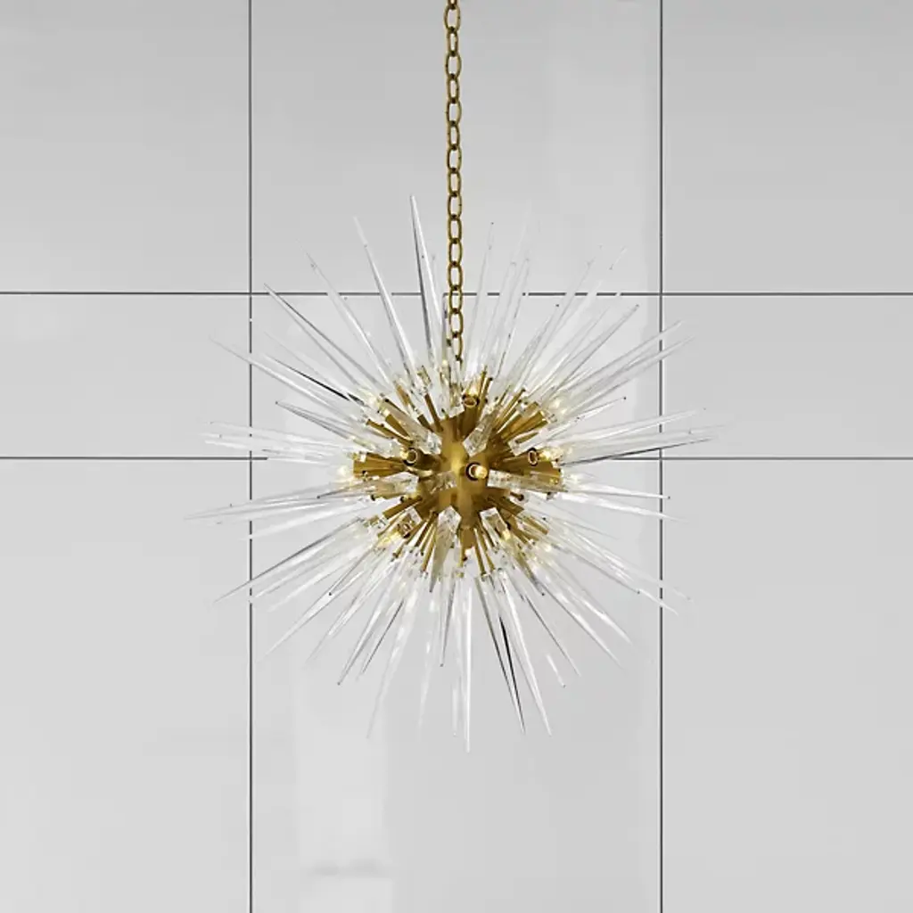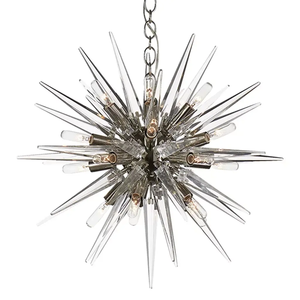 With its starburst design and metal shine, Visual Comfort Signature, formerly known as Visual Comfort,'s Quincy Sputnik Pendant is a new level of interstellar illumination. The Clear Acrylic shards create a reflective surface for the light to bounce off, creating a sparkling effect that's out of this world. Explore gorgeous new galaxies from the comfort of your own home with the Quincy Sputnik Pendant.