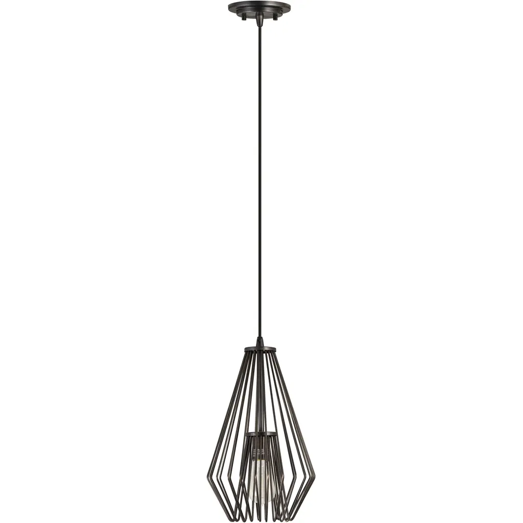 Industrial vibes bring a gritty yet elegant look to this one-light metal mini-pendant from the Quintus family. Geometric silhouetting offers a diamond profile with evenly spaced metal wires with a chic plated bronze finish and a single light that adds targeted illumination to a compact transitional space.