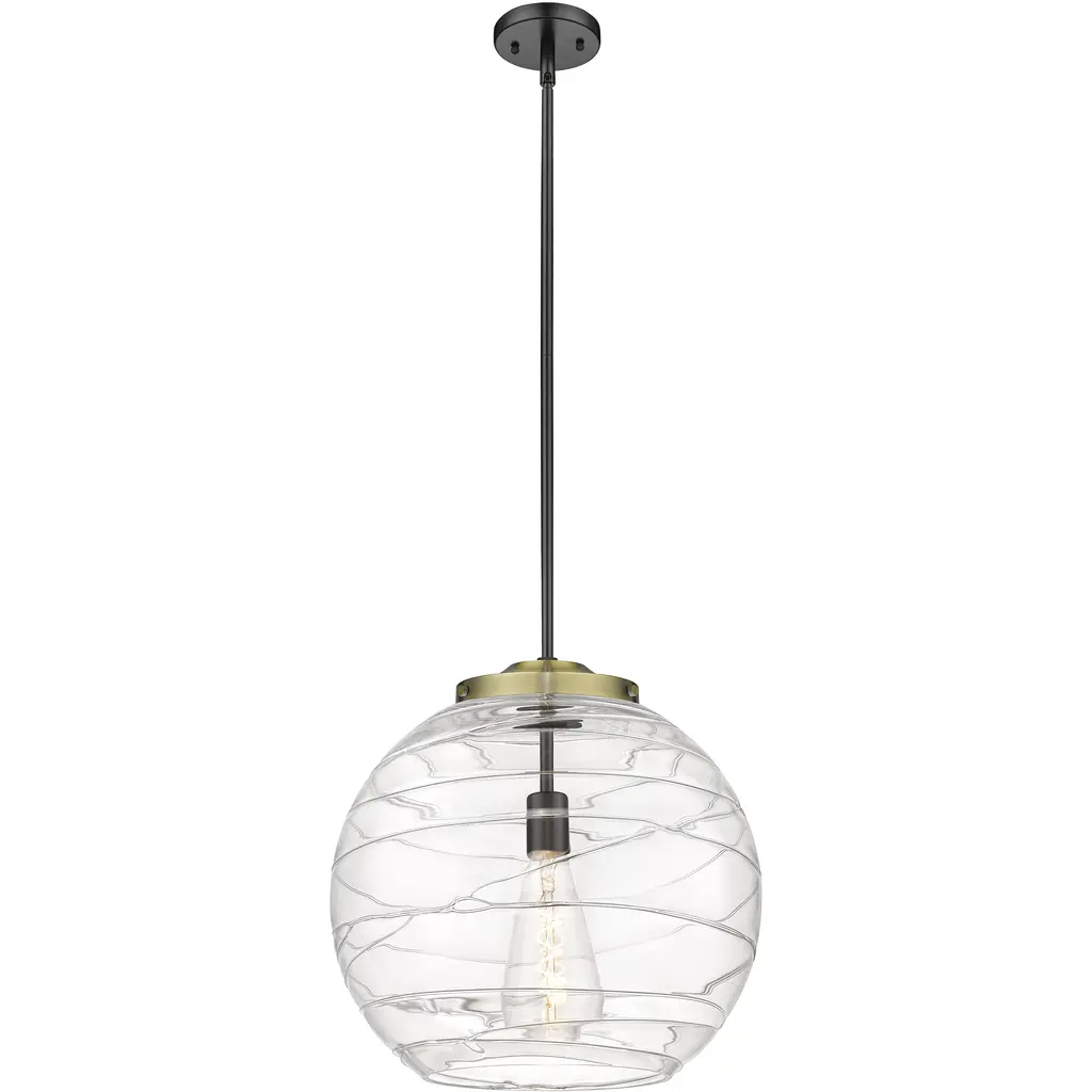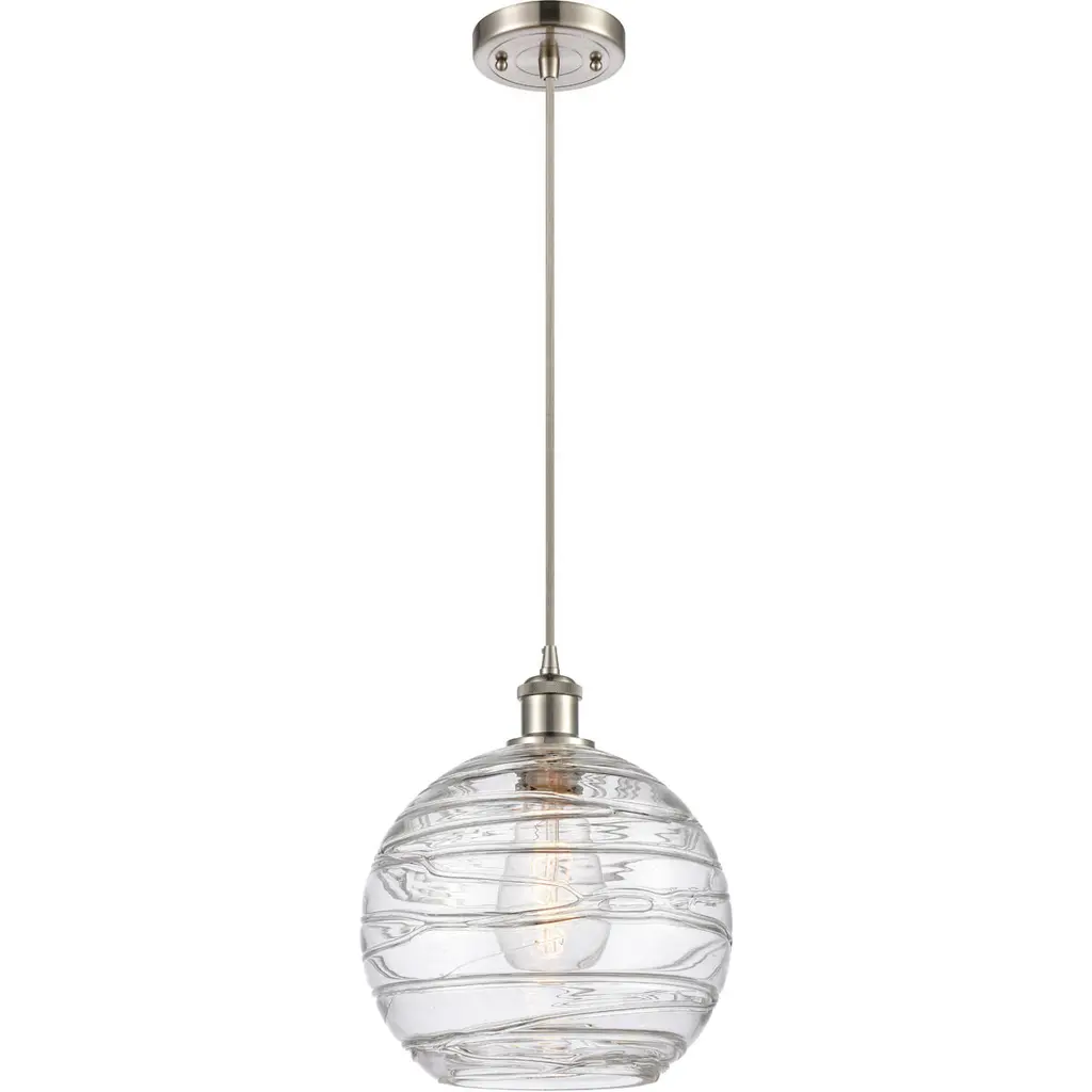 This globe pendant adds a contemporary-chic style to any setting. The blown clear textured glass shade enhance the fixture�s modern appeal. A dual chain and stem hanging system offer granular variability in height. Add a warm glow to your kitchen, bedroom, or bathroom with this lovely luminary.