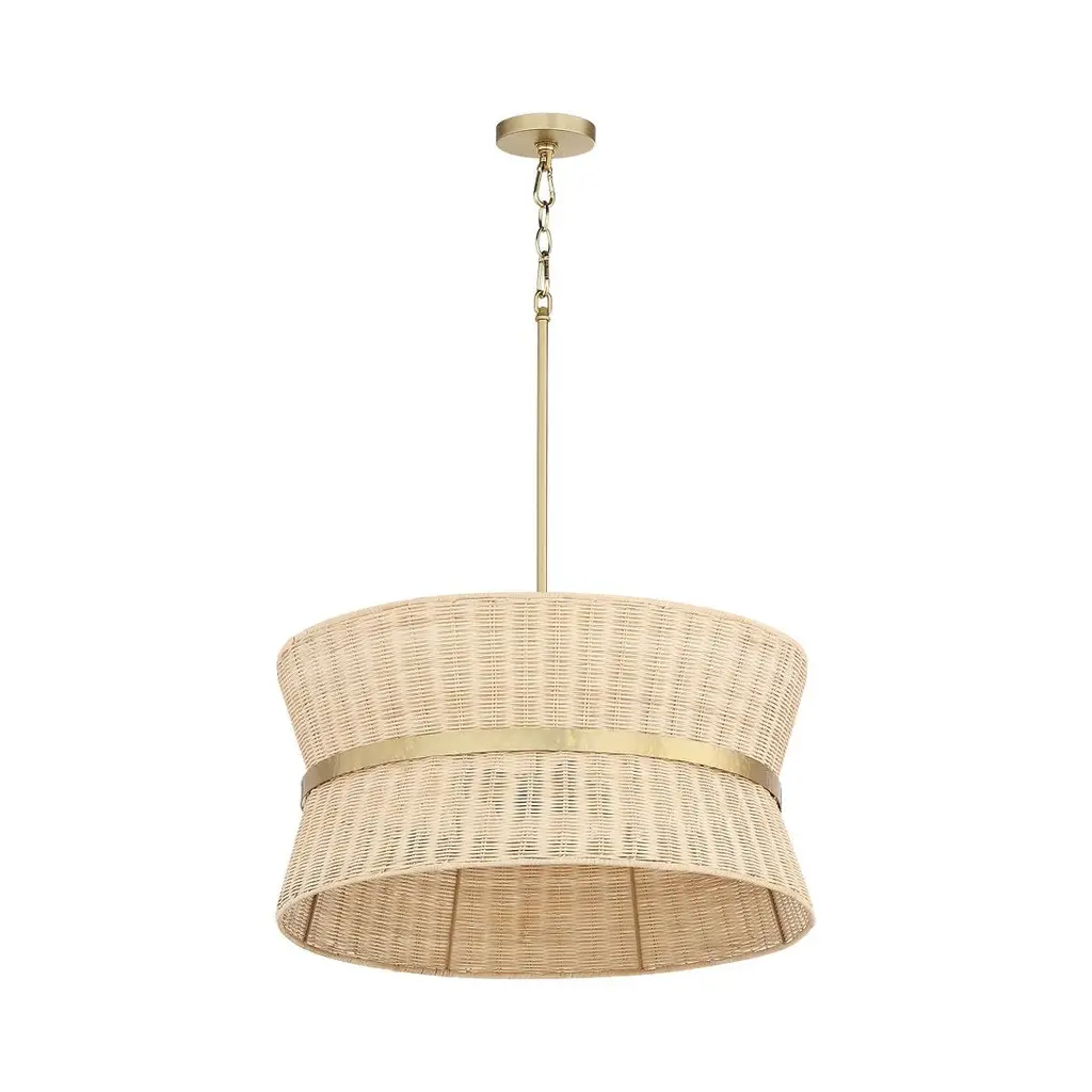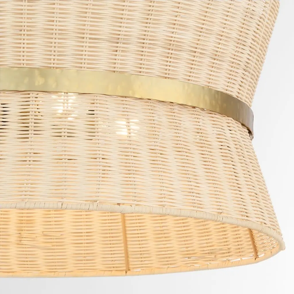 Fairview adds warmth, comfort, and security to any space. With its graceful rattan shade and hammered metal center band, this series captures the essence of natural beauty, reimagined for modern spaces. This versatile collection, available in brushed brass or matte black, includes sconces, wall mounts, and pendants, making it an excellent choice for both intimate and larger spaces alike.Features:Dimensions:Electrical Specifications: