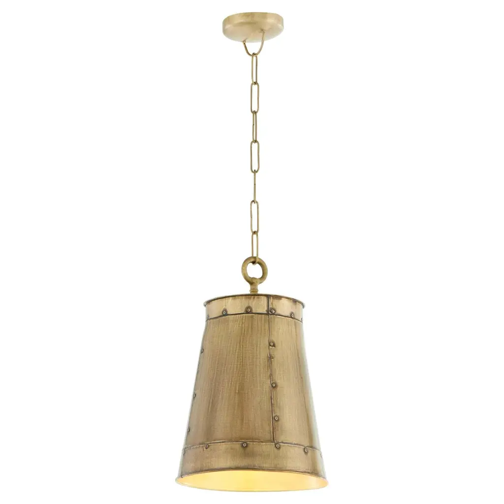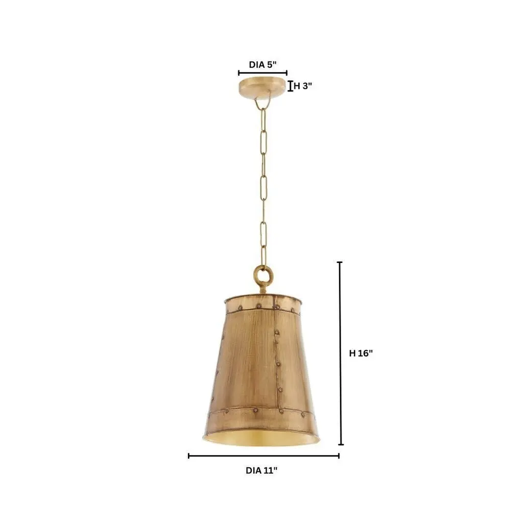 The Artisan dome pendant is a premier lighting solution for modern farmhouse designs. Decorative faux nail heads allow this fixture to epitomize chic nostalgia. Fit for a single medium-based 40-watt bulb, the Artisan 11-inch pendant is ideal for any industrial living room, kitchen, or dining room space.Features:Dimensions:Electrical Specifications:
