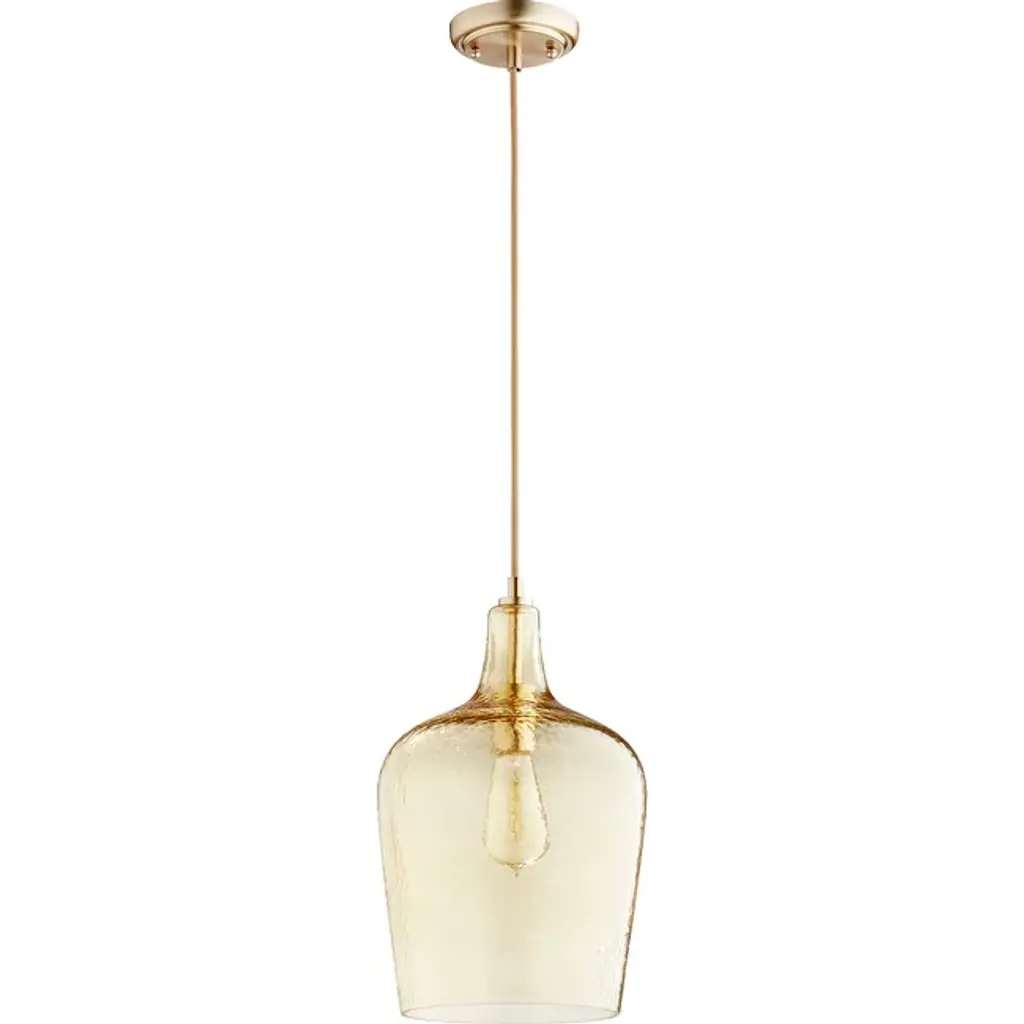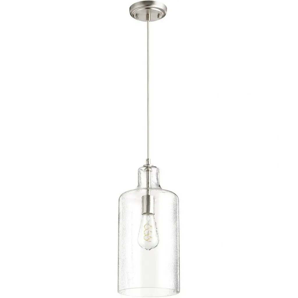 Quorum International 9" Wide Mini Pendant With Patterned/etched Glass - Satin Nickel
