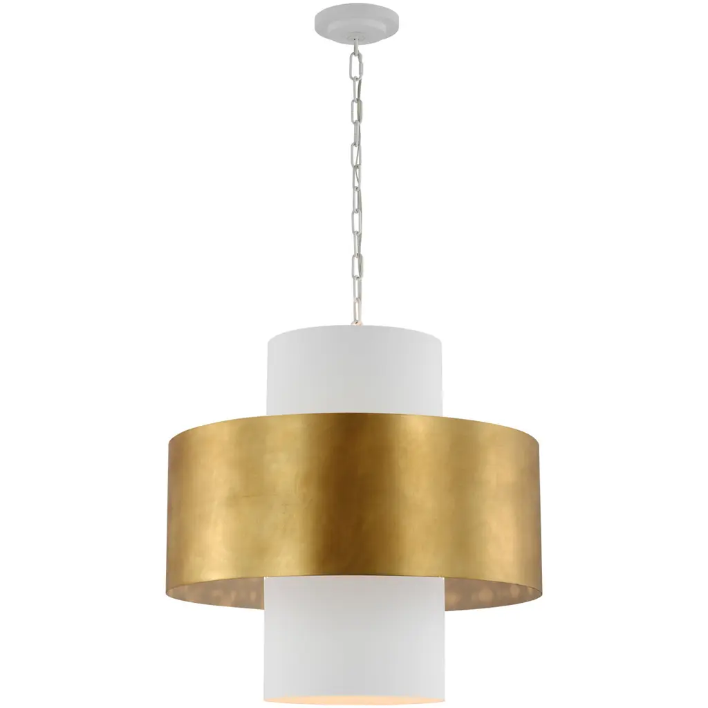 Finish Color: Noir/Aged Brass, Width: 12", Height: 15", Hanging Method: Rod and Chain, Number Of Bulbs: 1, Wattage: 100 Watts, Dimmable: No, Moisture Rating: Damp Rated, Desc: 1 Light Cylinder and Drum Pendant This eclectic one light pendant is the perfect lighting solution for any industrial-modern or nostalgic-transitional space. The two-tiered drum shade sports an opaque white finish on the outer layer, coupled with a classic Aged Brass finish on the interior layer. A matte white acrylic diffuser, and a matching Aged Brass chain and stem hanging system complete the look. Hang multiples over your modern farmhouse kitchen island for an outstanding design, or line your hallway with these luminaries for an exceptional ambient glow. Features: Product Type: Pendant / Style: Soft Contemporary / Finish: Studio White / Aged Brass . ,