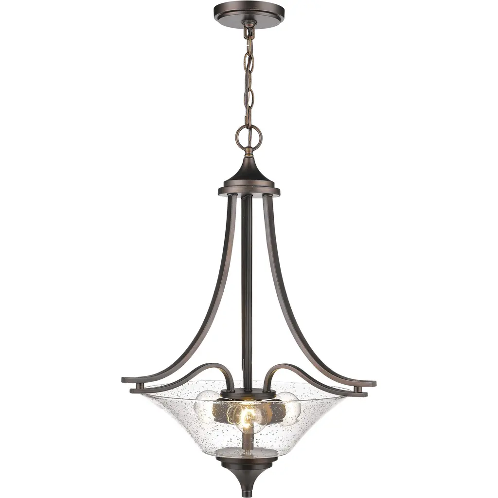 Material: Glass, Finish Color: Oiled Bronze, Width: 13", Height: 16", Number Of Bulbs: 4, Wattage: 60 Watts, Dimmable: No, Moisture Rating: Dry Rated, Desc: Four Light Vessel Dual Mount Pendant Features: Product Type: Dual Mount / Style: Transitional / Finish: Oiled Bronze w/ Clear/Seeded / Shade Color: Clear seeded . ,