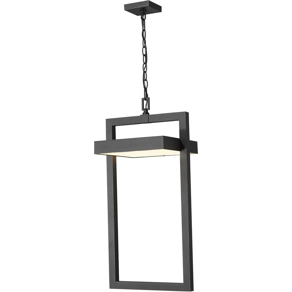 Collection: Al Fresco, Finish Color: Noir/Brushed Aluminum, Width: 7", Height: 18", Hanging Method: Stem, Lamping Type: LED, Number Of Bulbs: 1, Wattage: 11 Watts, Moisture Rating: Damp Rated, Desc: The Al Fresco outdoor series is centered on a one of a kind geometric design. This modern fixture balances perfect symmetry in its dual-layered frame. The two-toned Noir/Satin Nickel finish adds a sophisticated look to any contemporary outdoor setting.,