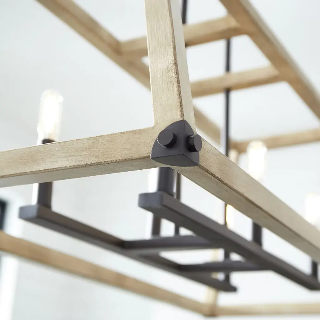Quorum Lighting Alpine 6-light Entry Pendant, Noir/driftwood, 16w X 14.5h X 36l