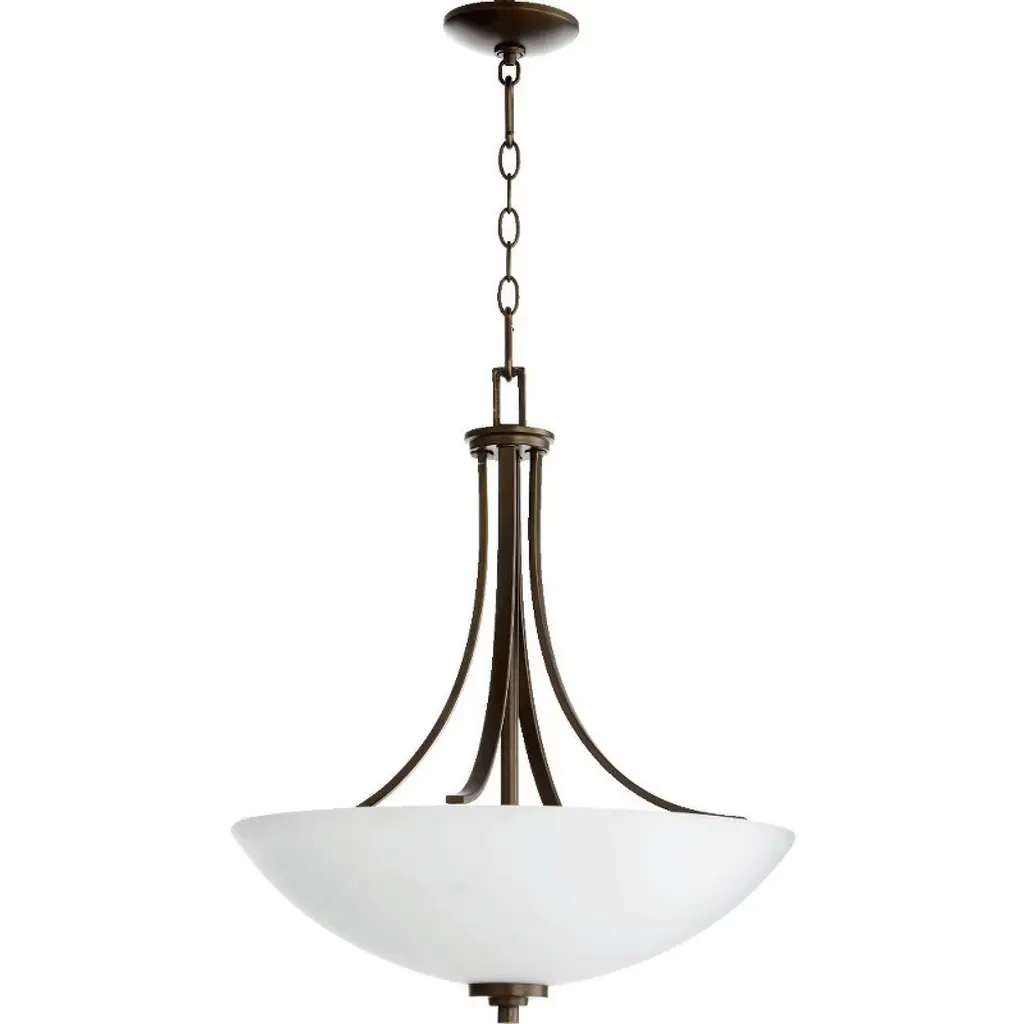 Introducing the Bryant 17.50 Inch Three Light Dual Mount Pendant by Quorum Lighting. This stunning pendant is part of the Bryant collection and features a beautiful oiled bronze finish. With a width of 17.5" and a height of 16.5", it is the perfect size to make a statement in any room. The pendant requires three bulbs with a maximum wattage of 75 watts. Unfortunately, it is not dimmable. The moisture rating is dry rated, making it suitable for indoor use only. The Bryant pendant is a versatile piece that can be mounted as a pendant or a semi-flush mount, giving you options to suit your space. With its high-quality construction and stylish design, this pendant is sure to enhance the ambiance of any room. Trust Quorum Lighting, a reputable manufacturer, to provide you with a reliable and beautiful lighting solution.
