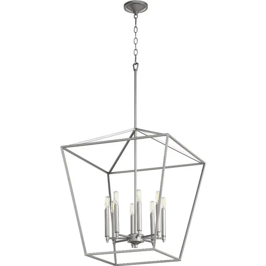 Introducing the Gabriel Five Light Nook Pendant from Quorum Lighting. This stunning pendant is part of the Gabriel collection and features a sleek Noir finish. With a width of 21" and a height of 17.5", it is the perfect size for any space. The pendant requires five 60-watt bulbs and is not dimmable. It has a dry rating, making it suitable for indoor use. The Gabriel pendant is a stylish addition to any entryway, with its Quorum Home Collection style and elegant Oiled Bronze finish. Elevate your space with this exquisite pendant from Quorum Lighting.
