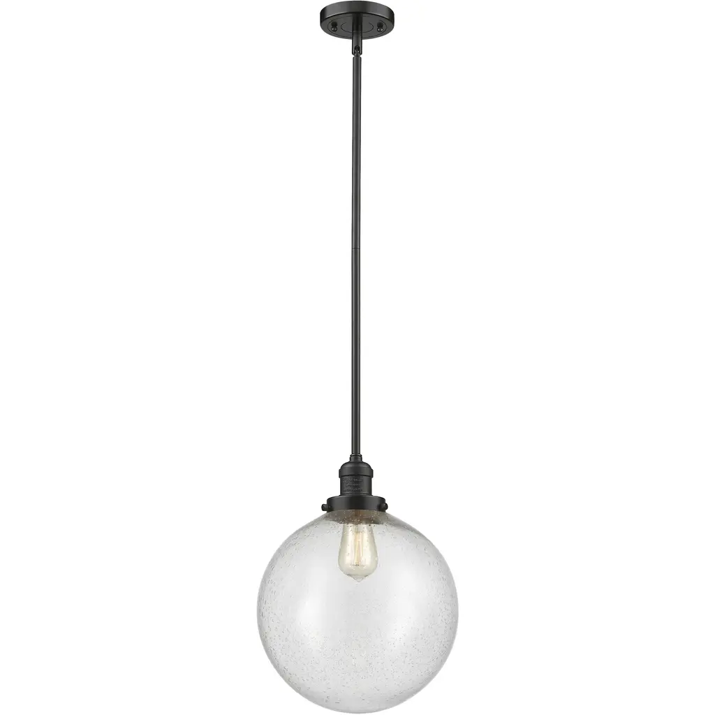 Collection: Meridian, Finish Color: Noir, Width: 12.5", Height: 12", Hanging Method: Stem, Number Of Bulbs: 1, Wattage: 60 Watts, Dimmable: No, Moisture Rating: Dry Rated, Desc: Meridian - 12.5 Inch One Light Globe Pendant Features: Product Type: Pendant / Style: Transitional / Finish: Aged Brass / Shade Color: Clear . ,