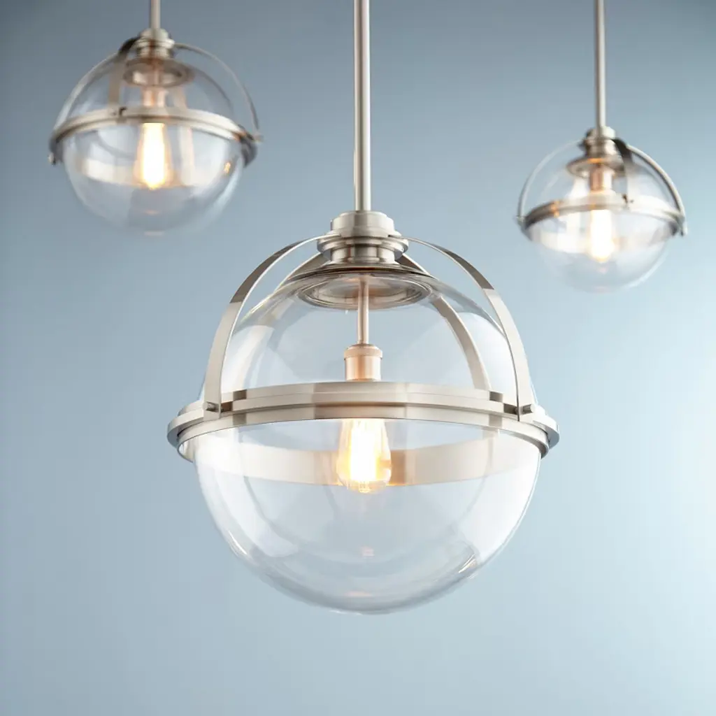 Collection: Meridian, Finish Color: Satin Nickel, Width: 19.5", Height: 20", Hanging Method: Stem, Number Of Bulbs: 1, Wattage: 60 Watts, Dimmable: No, Moisture Rating: Dry Rated, Desc: Meridian - One Light Pendant Features: Product Type: Pendant / Style: Transitional / Finish: Noir / Shade Color: Clear . ,