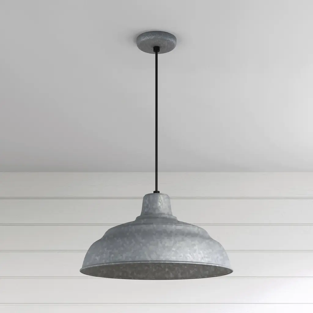 R Series 1 Light 17 Inch Galvanized Pendant Ceiling Light
