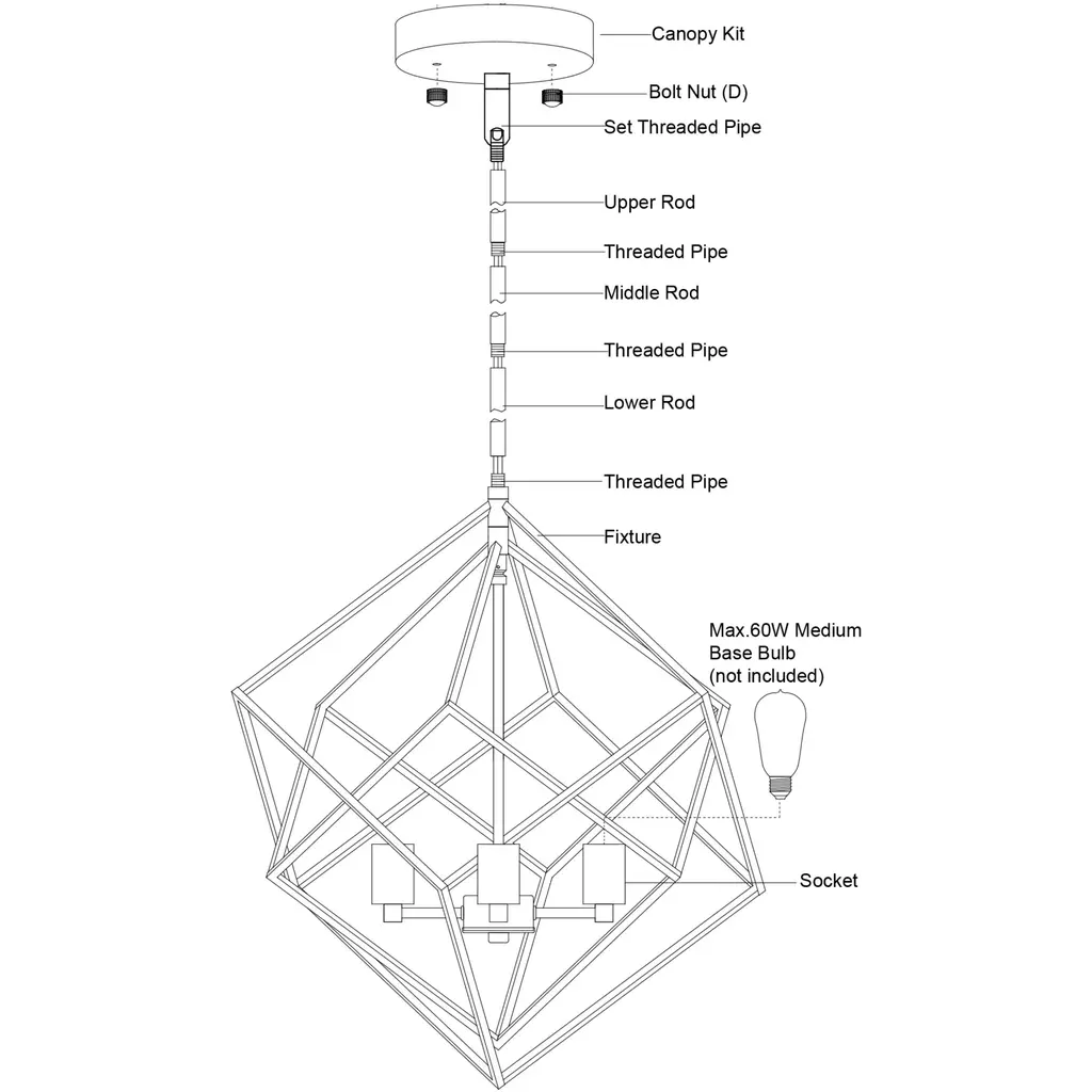 With its clearly geometric structure and industrial nested cube design, the Rad pendant light is radically charming. The black and satin nickel finish together give it a modern, yet versatile look. Height is adjustable with the included down rods, compatible with sloped ceilings. Vintage Edison filament bulbs will look stunning with this light wherever you place it: dining room, living room, foyer, kitchen, or bedroom.