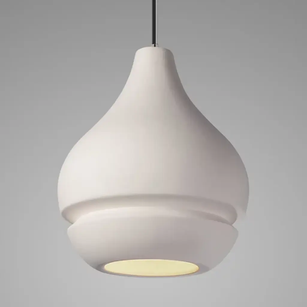 Middle Eastern motifs, updated with a modern sensibility. Justice Design’s Radiance Arabesque Mini Pendant is handcrafted in the United Sates, of Ceramic in an evocative teardrop profile. Dangling dramatically from a long cord, its gently curved contours are cut through with a crisp channel, a clean, contemporary contrast to the decorative form. The pendant infuses living spaces with an exotic, yet modern feel and can be displayed alone or in a group for maximum impact.