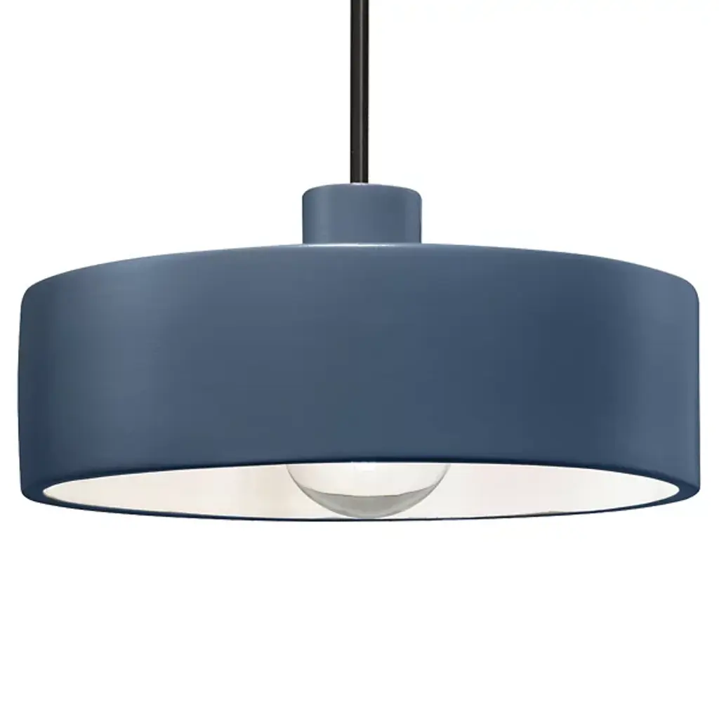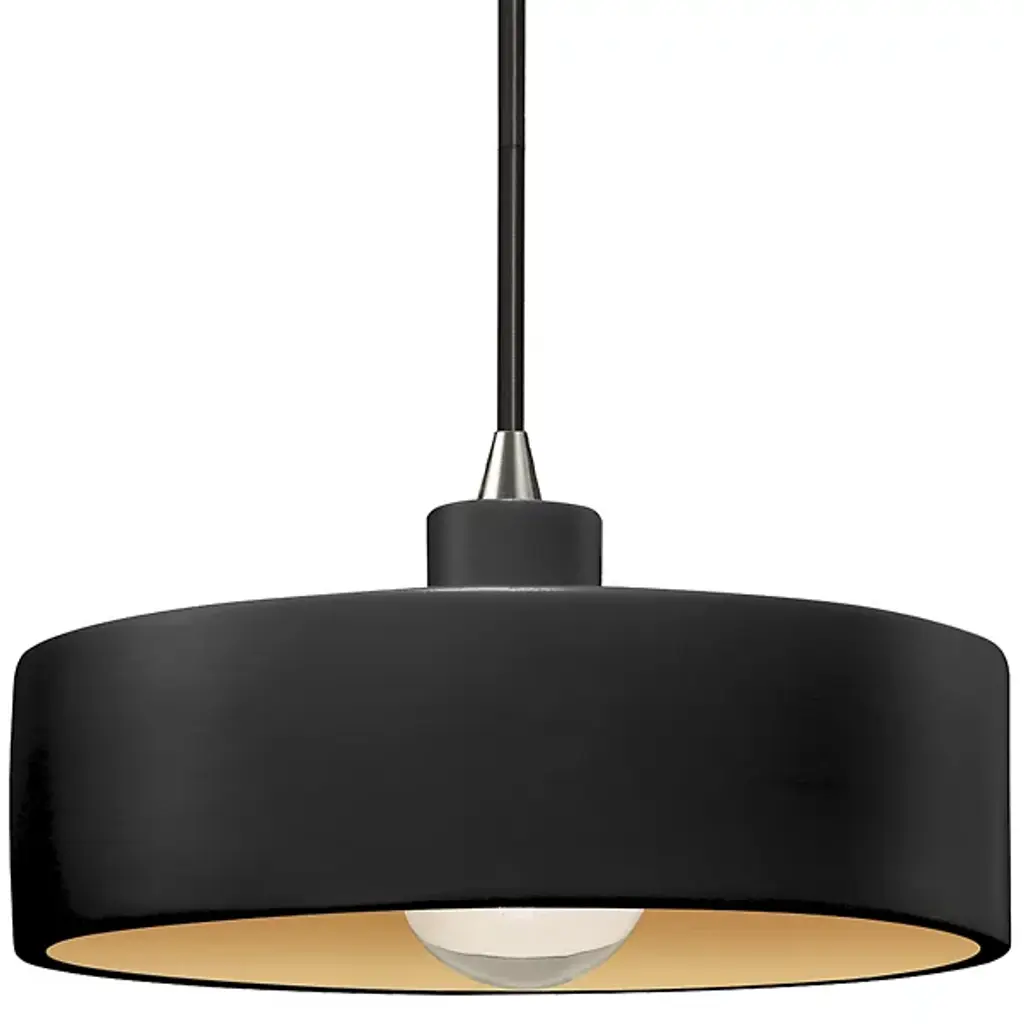 Radiance Collection™ - Dish Ceramic Pendant - Brushed Nickel Finish - Pewter Green Shade - Black Cord - E26