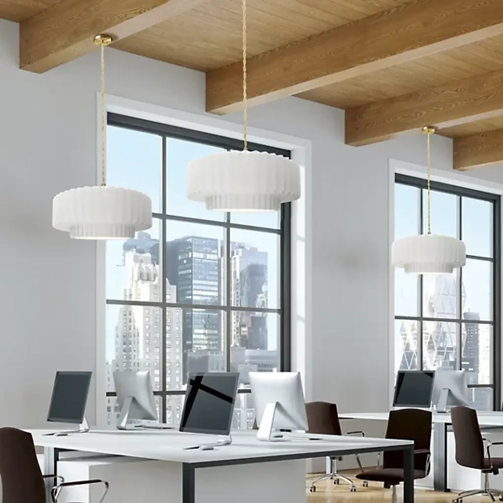 Brighten your space with modern sophistication with the installation of Justice Design's Radiance Tier Pleated Pendant. Ideal for illuminating your kitchen or dining area, this chic pendant light fosters a welcoming ambiance. Its contemporary design seamlessly merges style and functionality, making it a superb fit for any modern setting. Crafted from durable ceramic, it ensures longevity and enduring charm. Versatile enough to serve as a focal point in any room, this pendant from Justice Design delivers a stunning lighting solution that effortlessly marries style with practicality.