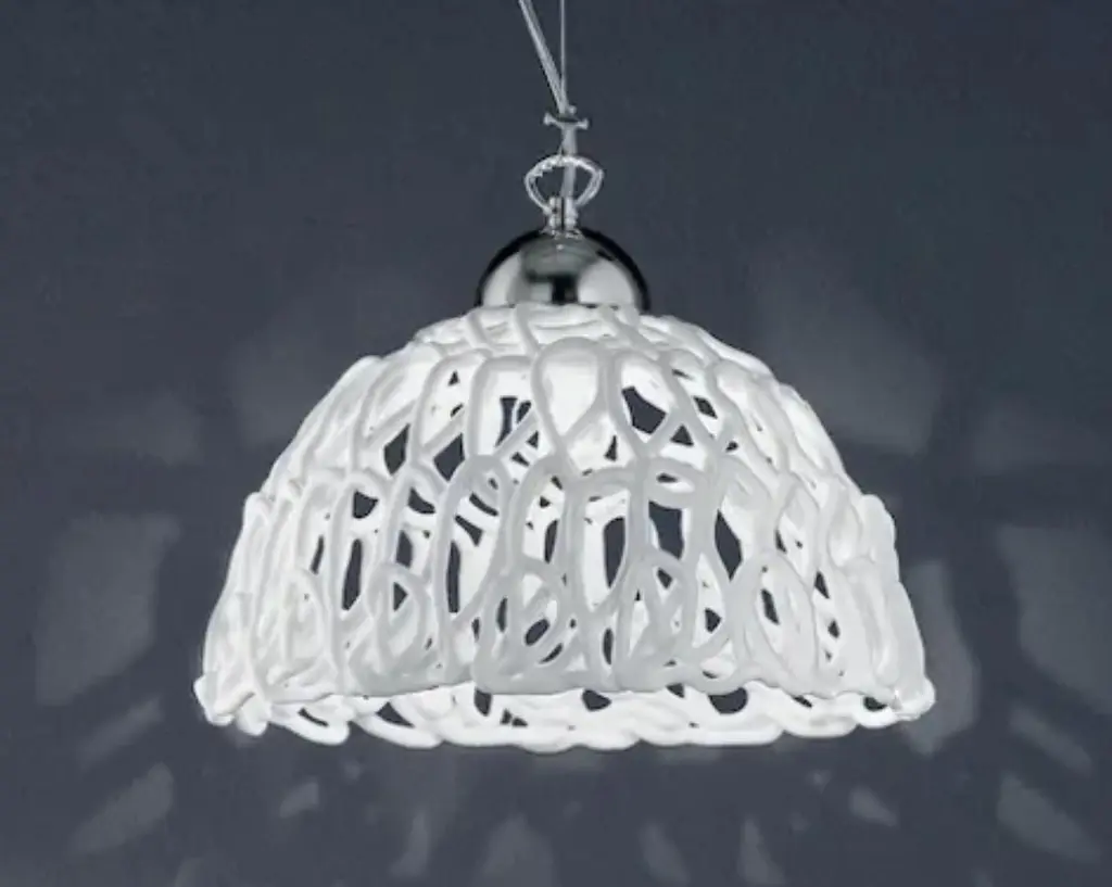 Italian chandelier pendant with white Murano glass shade hand blown to form an organic cobweb texture, mounted on chrome hardware / Made in Italy1 light / E26 or E27 type / max 60WMeasures: Diameter 12.5 inches / height 8 inches plus cable and canopyOrder only / This item ships from ItalyOrder reference #: FABIOLTD C288