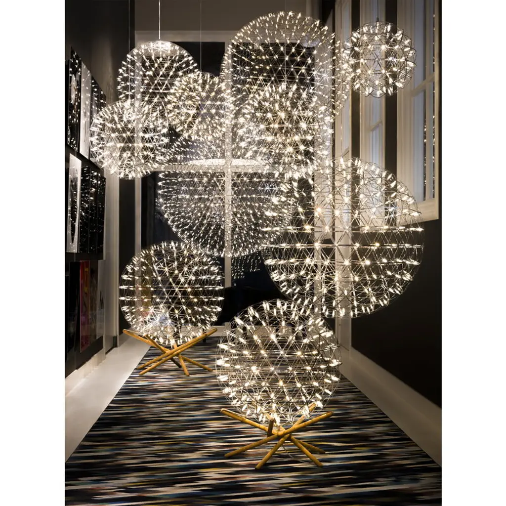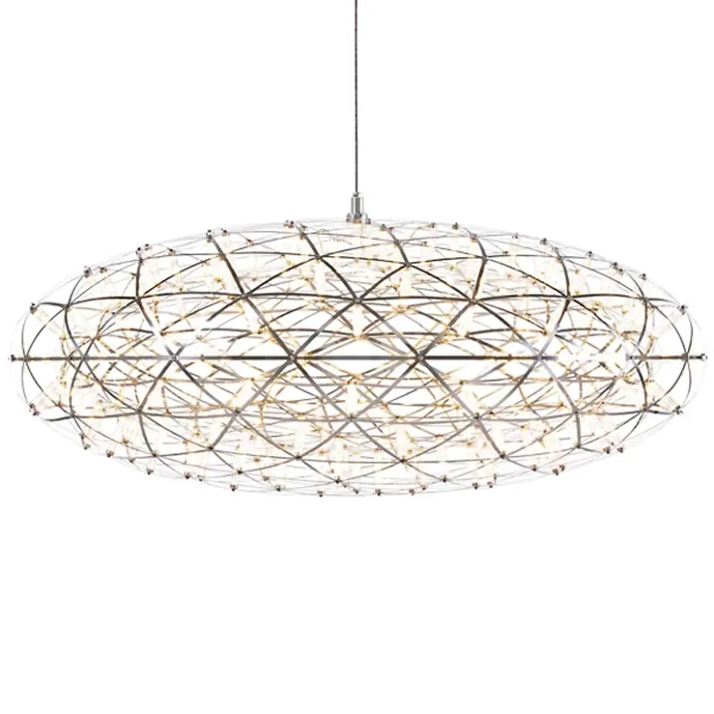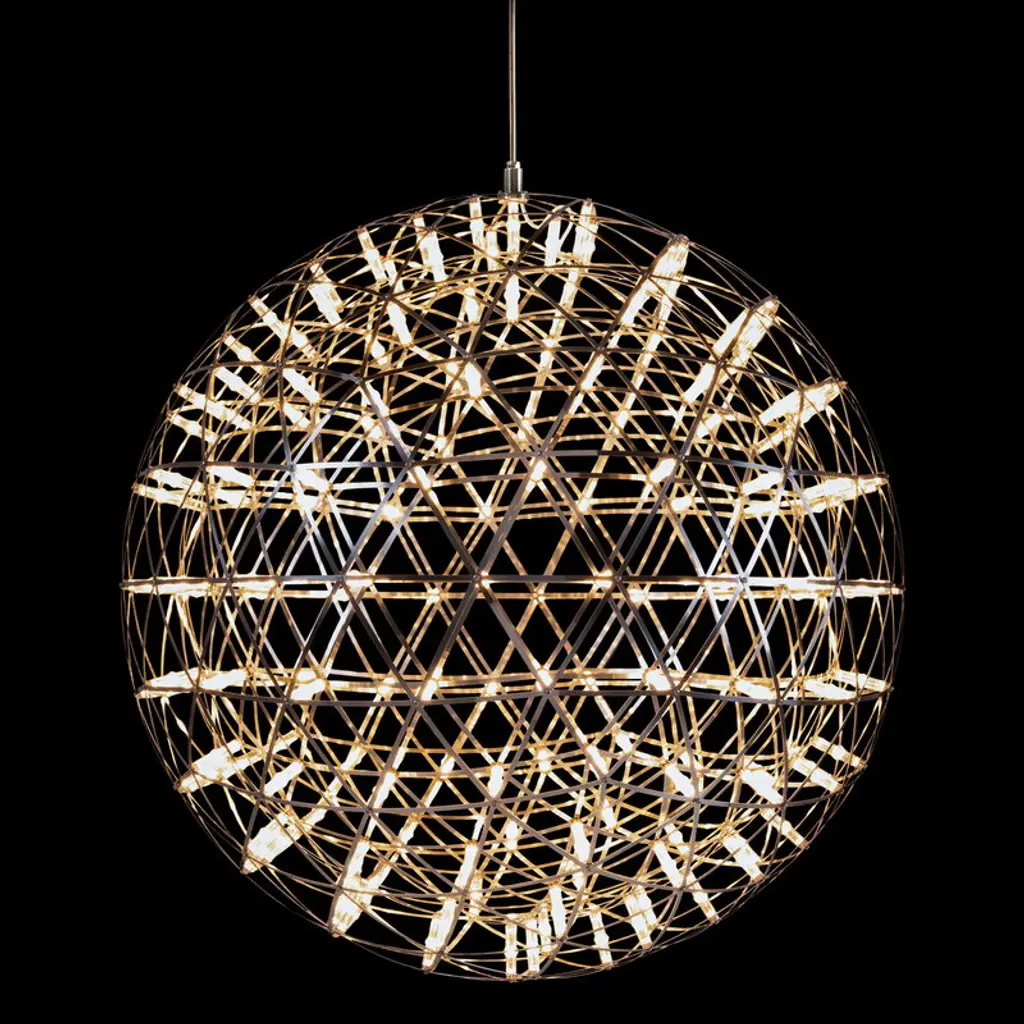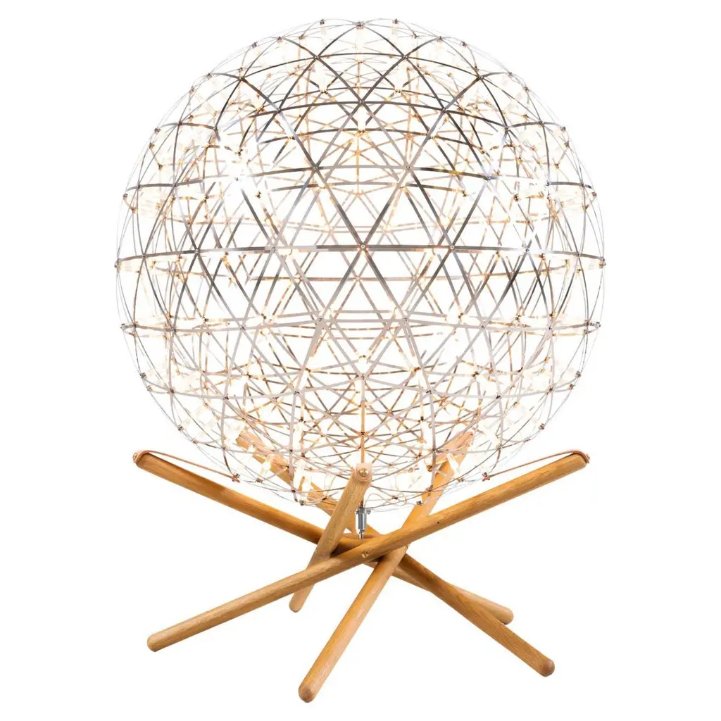 Moooi’s Raimond II R43 pendant brings the unique beauty of a starry night into your home. Designed by mathematician Raimond Puts, the suspension light consists of a perfectly round steel net lit with a multitude of tiny LED bulbs that resemble stars twinkling in a night sky. Create the perfect atmosphere in your home with the dimmable Raimond pendant or combine several pendants to form a whole constellation reminiscent of fireworks lighting up the sky. Raimond Puts's inspiration for the Raimond lighting collection was the geodesic dome, a hemispherical construction consisting of triangular elements. Developed by American architect Buckminster Fuller in the 1940s, the geodome has been applied to buildings like greenhouses and glass igloos, for example – but Puts envisioned it as a luminaire. It took Puts almost 40 years to develop the lamp design, conducting endless research and building numerous prototypes until, in 2009, the collection's first luminaires were ready to be introduced to the world. As a mathematician, Puts was also fascinated with prime numbers and decided to give all Raimond lights diameters that were based on a specific prime number (like 43, for example). In 2021, the Raimond pendant was updated with new dimming possibilities and more efficient LED lights, allowing the luminaire to shine even brighter. The modernized version was given the rather regal name Raimond II.