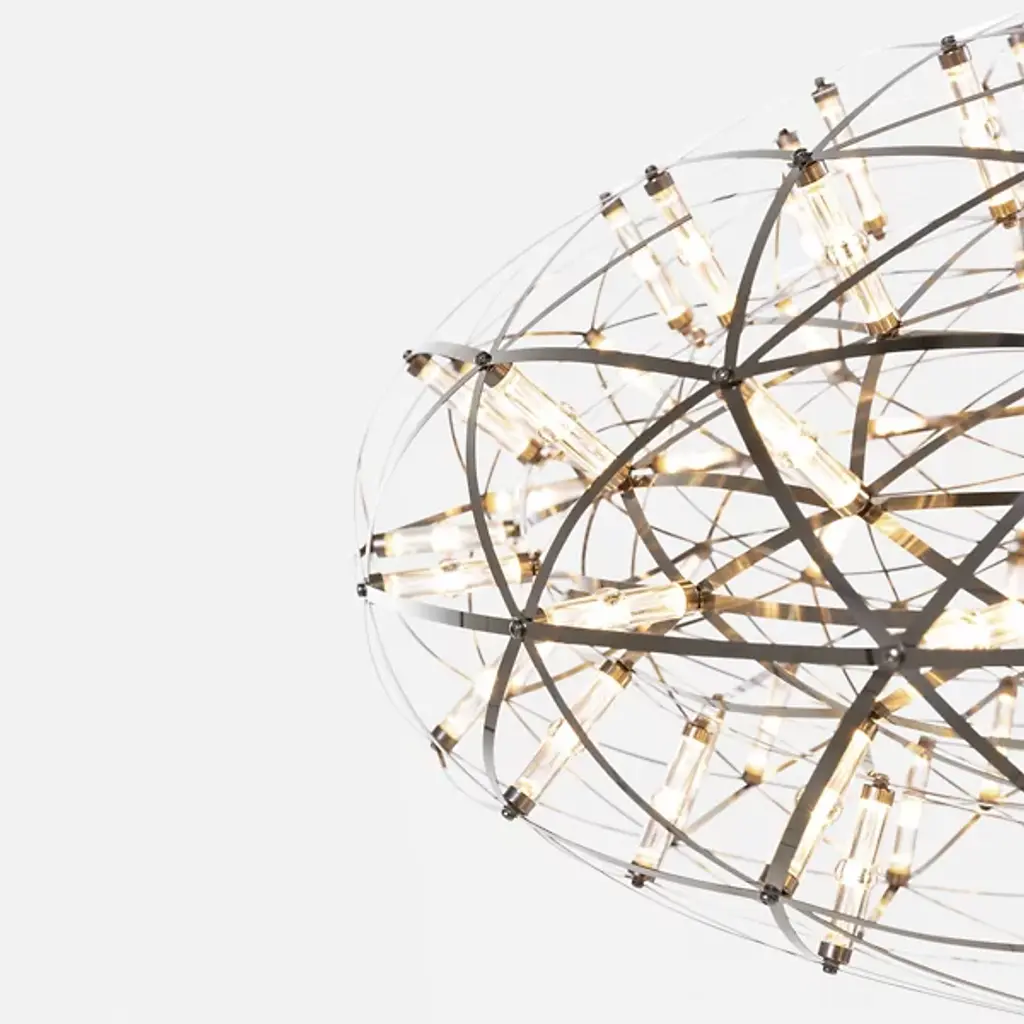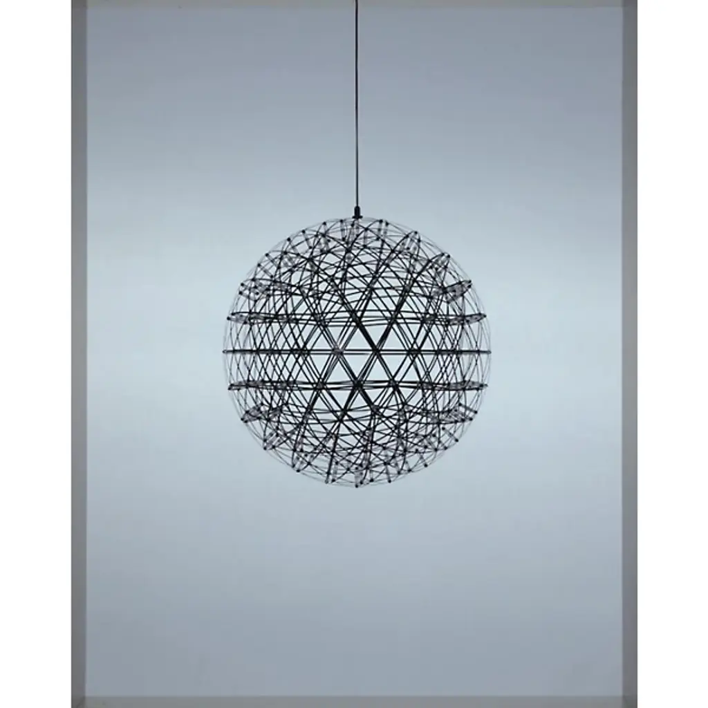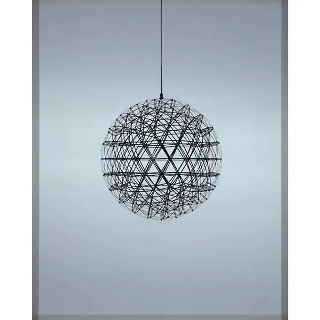 Recreate the starry night with the uniquely mathematical Moooi Raimond II Zafu LED Suspension. Its spring-steel frame is constructed in such a way that the electrical current actually travels through the fixture's inner and outer spheres. The LED terminals connect these paths and create its distinctive atmospheric ambiance. Designed by Raimond Puts, in association with Ox-ID.