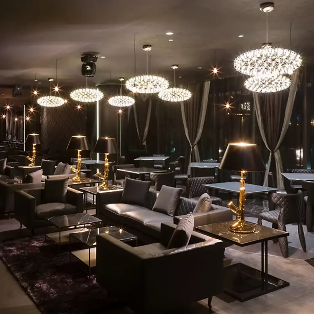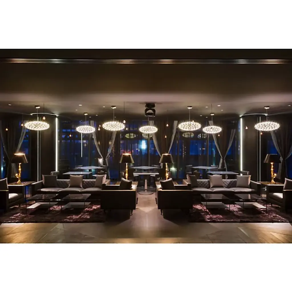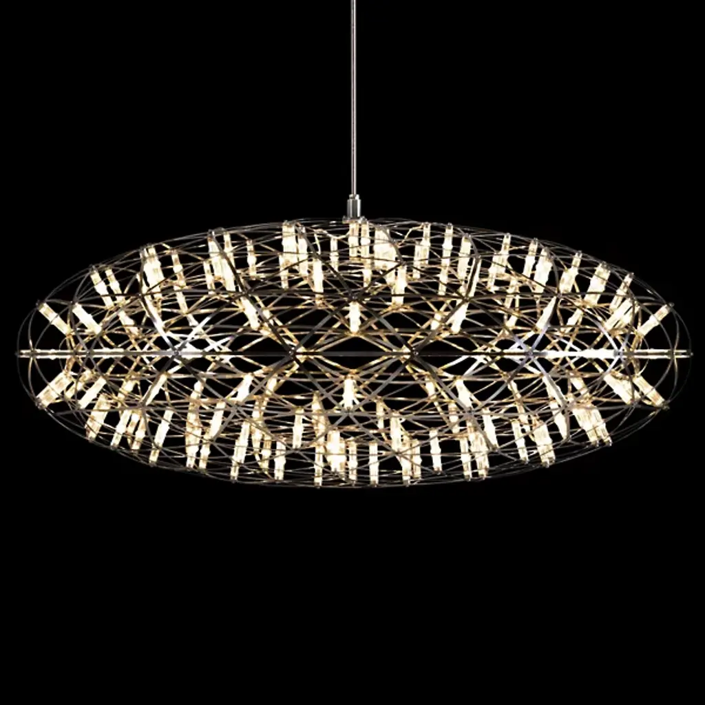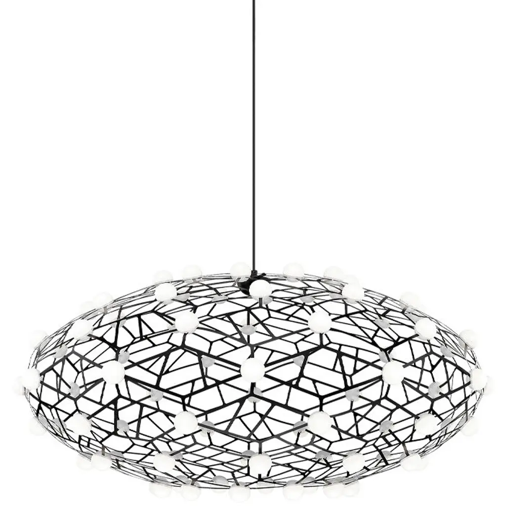 Recreate the starry night with the uniquely mathematical Moooi Raimond II Zafu LED Suspension. Its spring-steel frame is constructed in such a way that the electrical current actually travels through the fixture's inner and outer spheres. The LED terminals connect these paths and create its distinctive atmospheric ambiance. Designed by Raimond Puts, in association with Ox-ID.