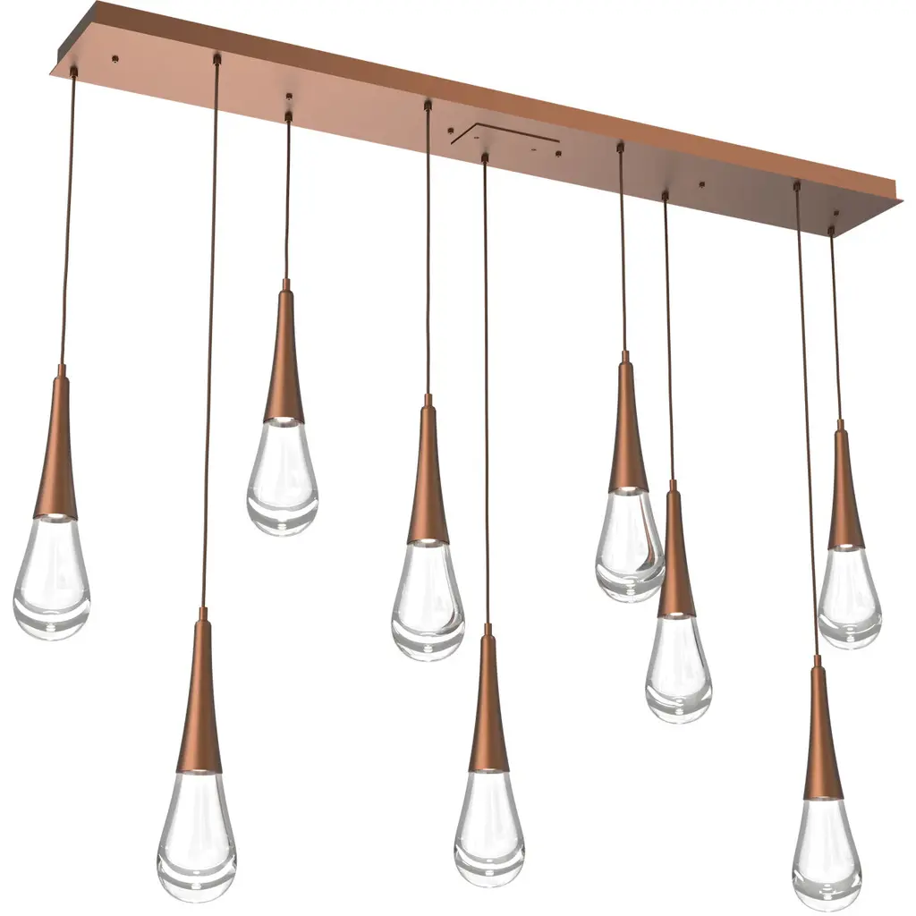 Raindrop Linear 7 PC.-Flat Bronze-Blown Glass - Clear-Bronze Cloth Braided Cord-LED