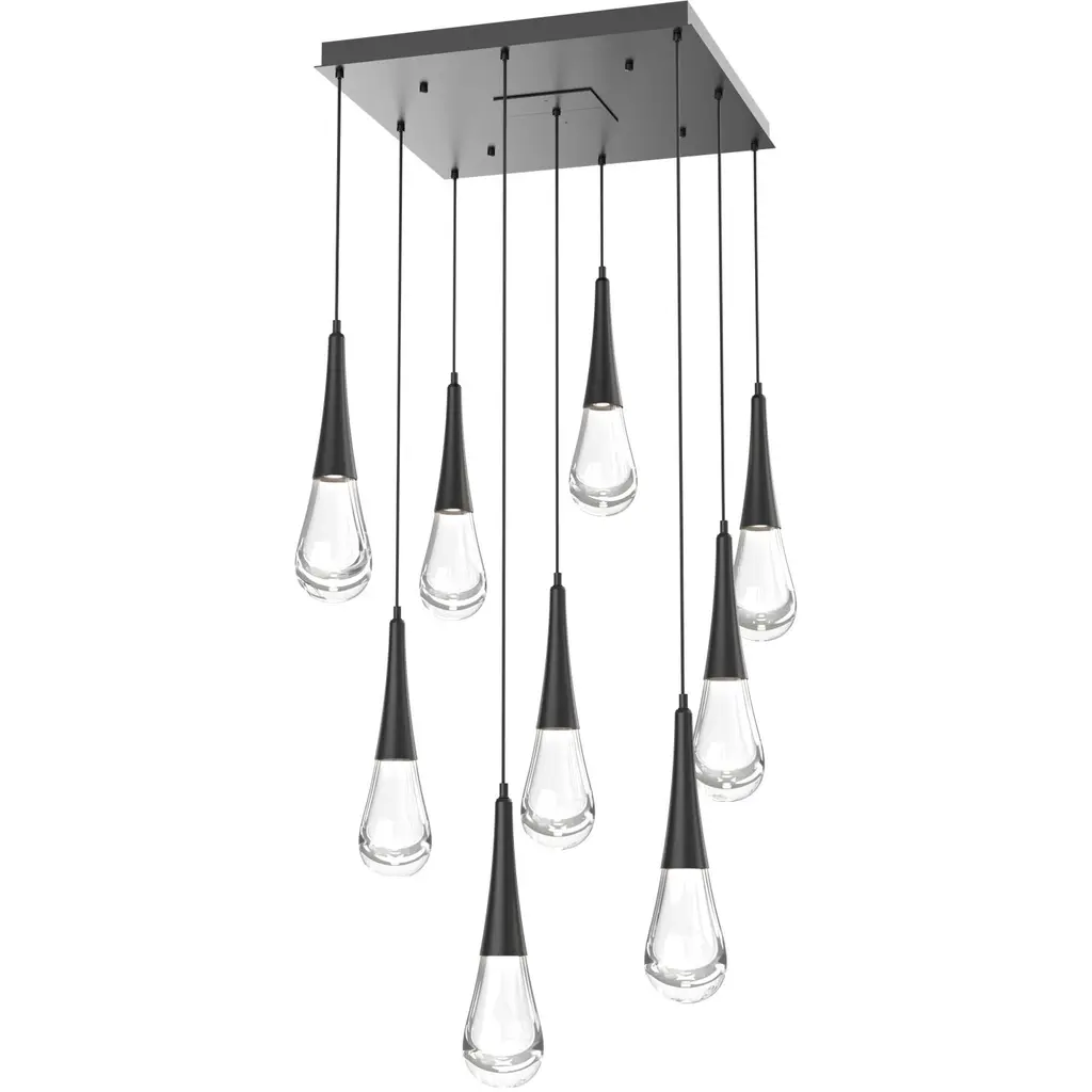 Raindrop Linear 7 PC.-Graphite-Blown Glass - Clear-Silver Cloth Braided Cord-LED