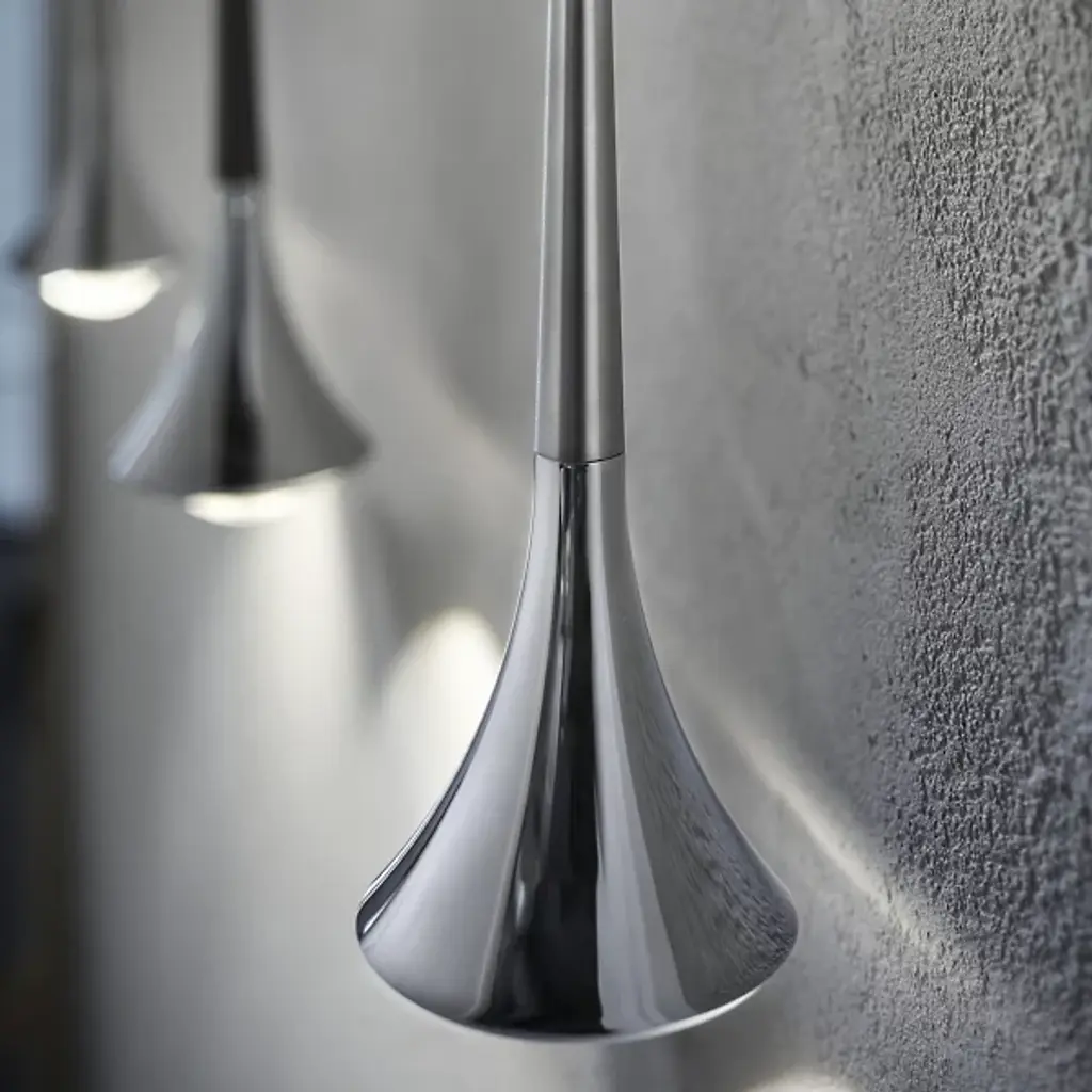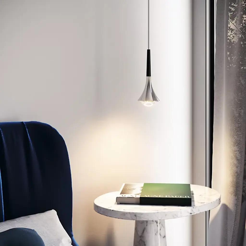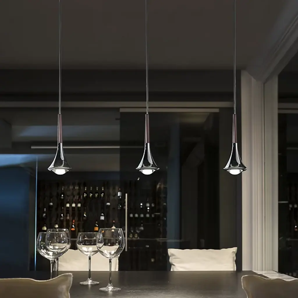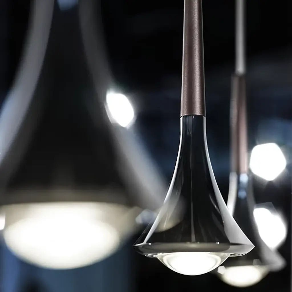 The Rain LED Pendant by LODES has the whimsical look of a falling raindrop suspended in midair. The LED light shines through a glass diffuser and casts a soft glow beneath it, providing the perfect amount of illumination for a table or nightstand. The sleek design is uniquely beautiful, and the different finishes allow for additional customization, making this pendant well-suited for dining room, living room, and bedroom applications.