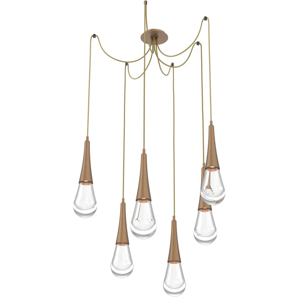 Capturing the ethereal beauty of a spring shower, this versatile chandelier style enables customization of the placement and height of each pendant. Each Raindrop seamlessly fuses sculptural metalwork with luxuriously thick artisan blown crystal glass. Integrated LED light illuminates the glass shade without the distraction of a filament bulb. Choose from several finishes.