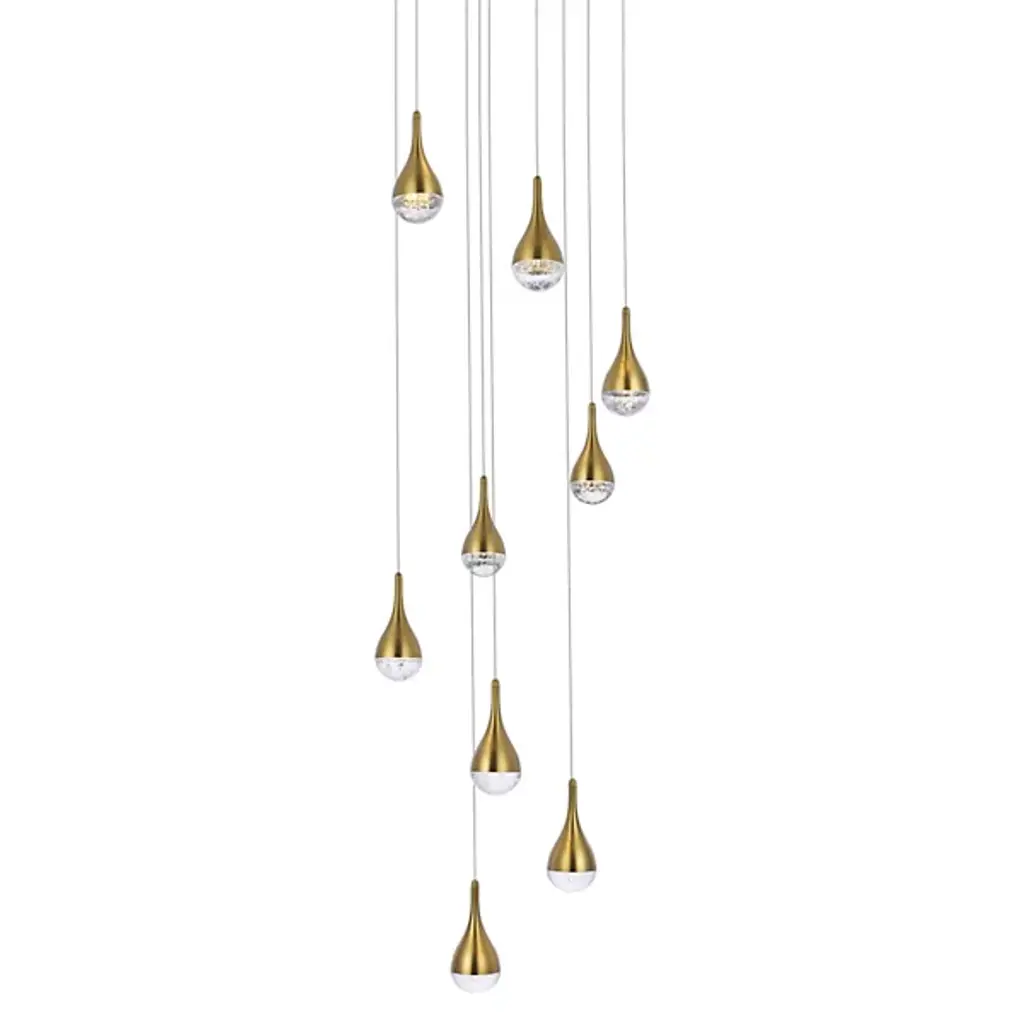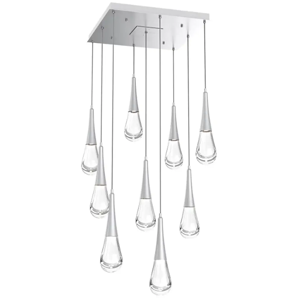 The Raindrop Square LED Multi-Light Pendant from Hammerton Studio is a sculptural blown glass piece, imagining what a spring shower would like if stopped in time. The piece speaks to the modern setting with a clean silhouette that's easy to follow. The linear arrangement gives the dining table or kitchen island an encompassing focal point. Hanging with fine cord, cone-shaped metal accents suggests the top half of a raindrop with a sleek, seductive quality. Like brilliant raindrops, blown glass shades dot each pendant as delicate bulbous forms. To showcase the intricate polishing and hand-shaping work by the glass blowers, the piece hides the LEDs behind the metal elements. When turned on, the piece creates a shower of clean, spacious light.