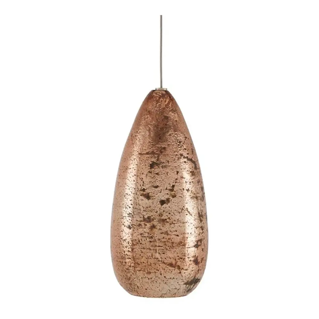 Give your living space a natural aesthetic with the Rame Drop Mini Pendant by Currey & Company. This Pendant embodies an ornate teardrop shape. The body of this hanging fixture connects to a canopy at your ceiling. Vibrant light dispenses throughout your room from a Xenon Frosted Bulb. With light from overhead, easily add the finishing touches to your homecooked meals when you place this decorative Pendant in your kitchen. • Teardrop shape • Hangs in midair • Complements kitchen and dining areas