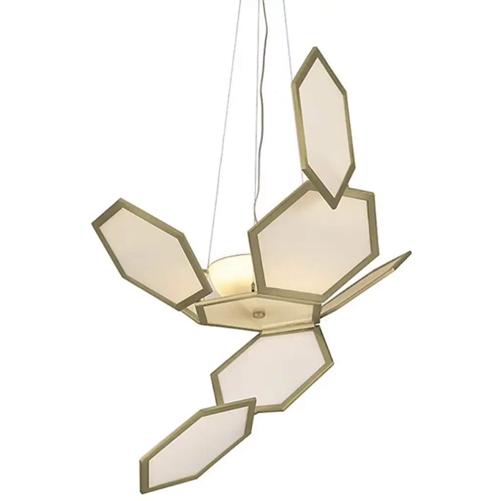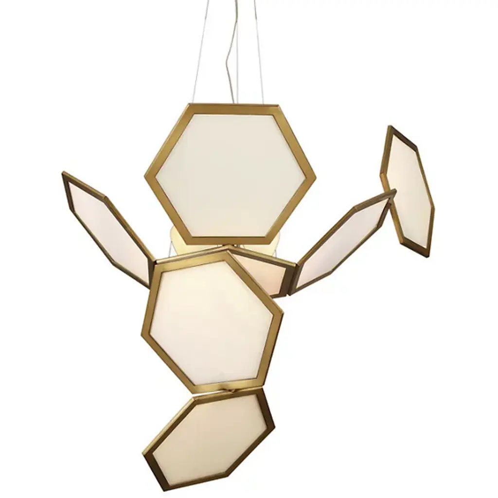 Designed by Juan Orts for Myo, the Ramie 80 Pendant is a transitionally designed luxury light with mid-mod inspired touches. Featuring a stunning composition of brass and opal glass hexagon shapes, this gorgeous single-tier chandelier has been made in Spain and features dimmability when attached to a standard dimmer. While this piece would do well in a multitude of spaces, it’s best to display the Ramie somewhere that would benefit from the elevated style and pleasant illumination experience.