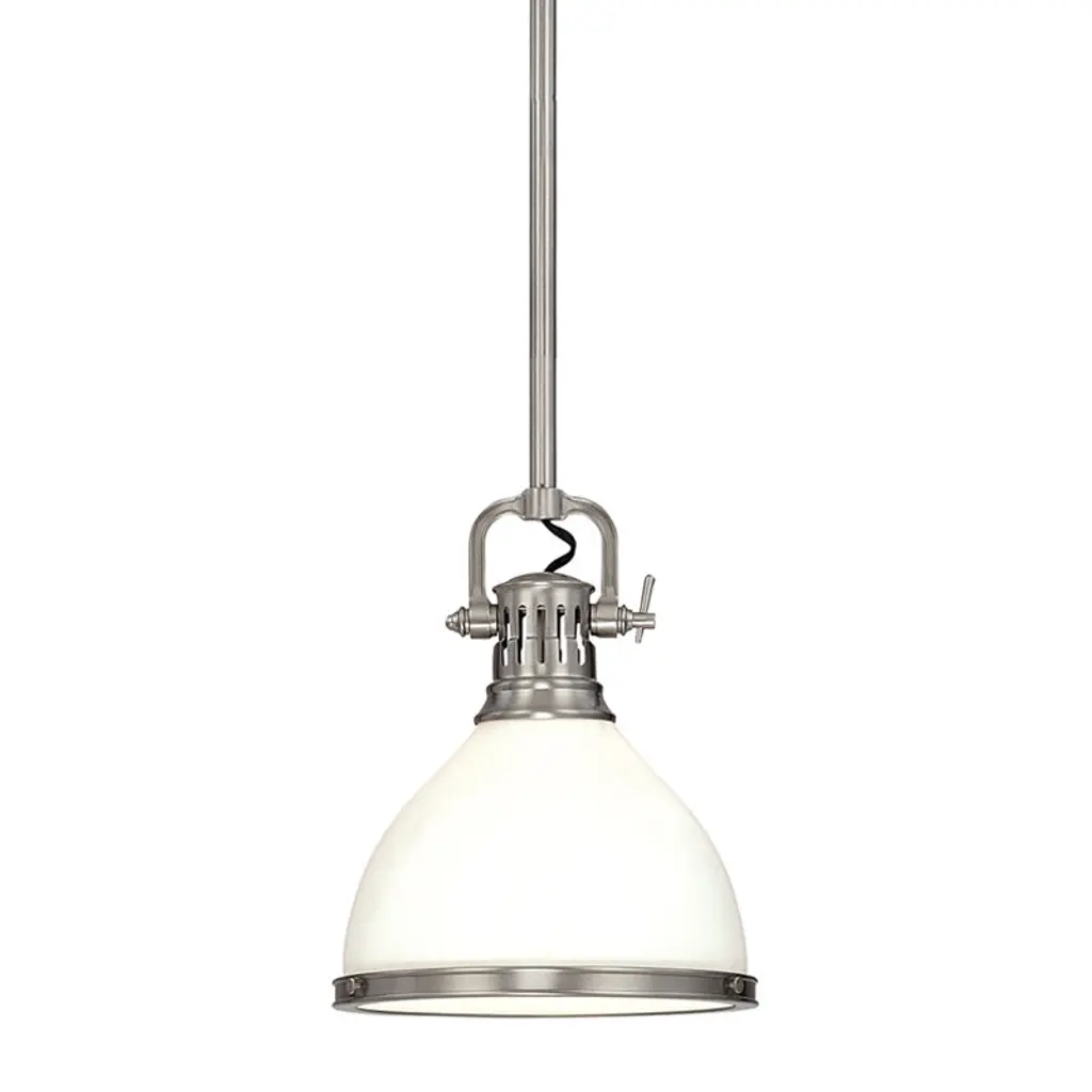 Old-fashioned parlor lighting is recreated in the Hudson Valley Randolph Mini Pendant. Held within an adjustable base, a milky white dome of Glossy Opal glass diffuses a creamy wash of light. This structure is complemented by the simple detailing on the base and metal banding. Available in three sizes and four finishes.