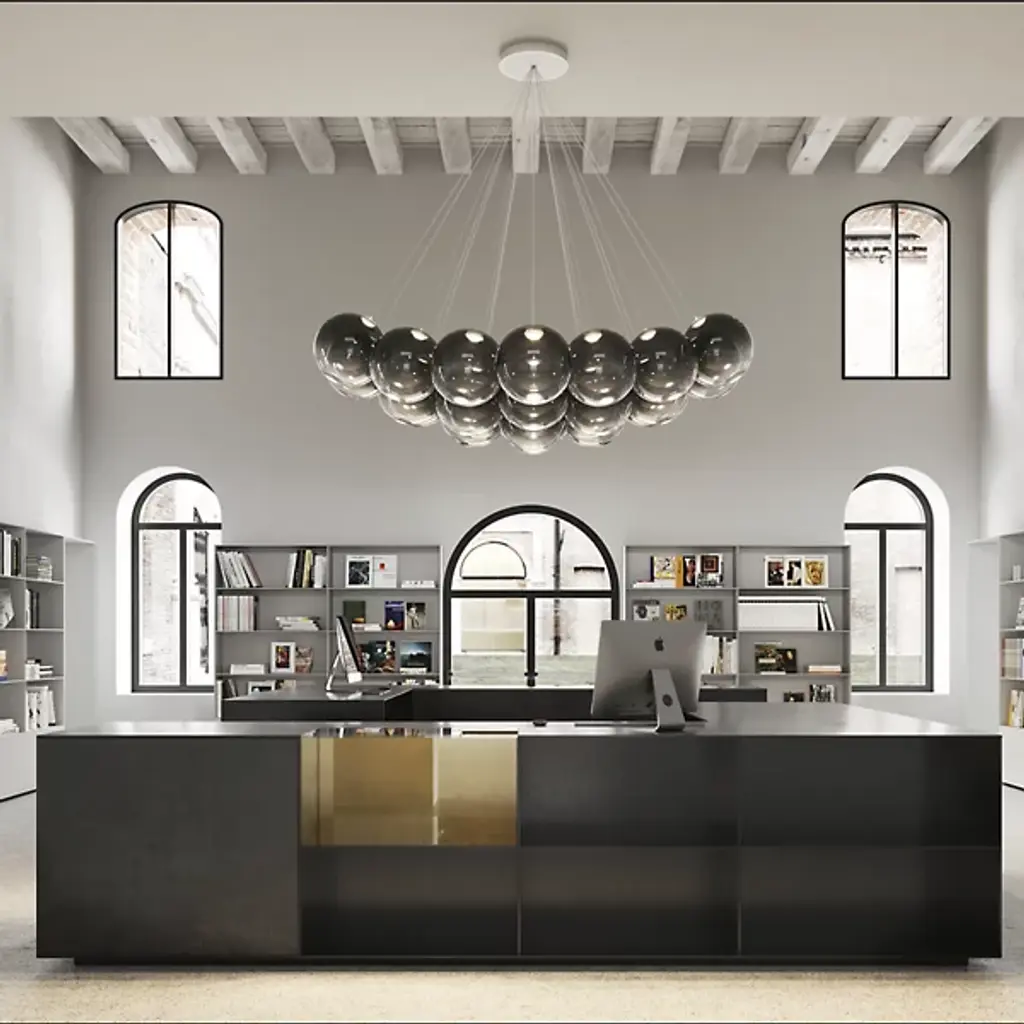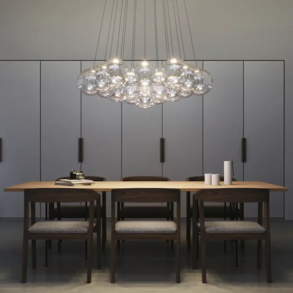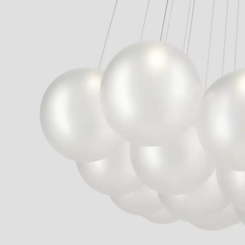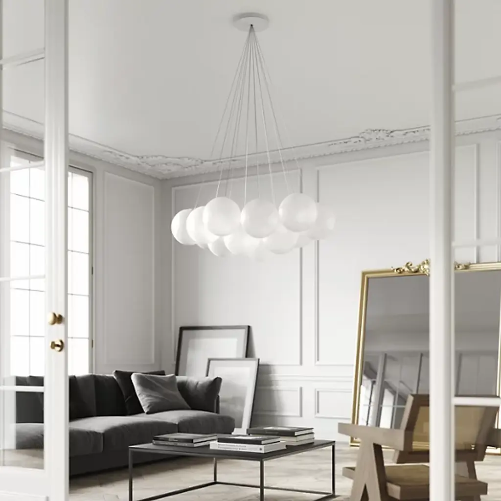 Add open and ethereal style to inside ceilings with the Random Cloud LED Multi Light Pendant from Lodes. Made in Italy, this is a voluminous creation by award-winning designer and artist Chia-Ying Lee and leverages her multifaceted experience with technology, art, and design manifesting in physical forms to re-imagine the conventional chandelier concept as a contemporary masterpiece. The design, art, and technology are embodied in physical forms. Elegant and versatile, it places LED lamping inside globe-shaped blown glass shades with subtle variations, creating an even ambiance below the fixture.