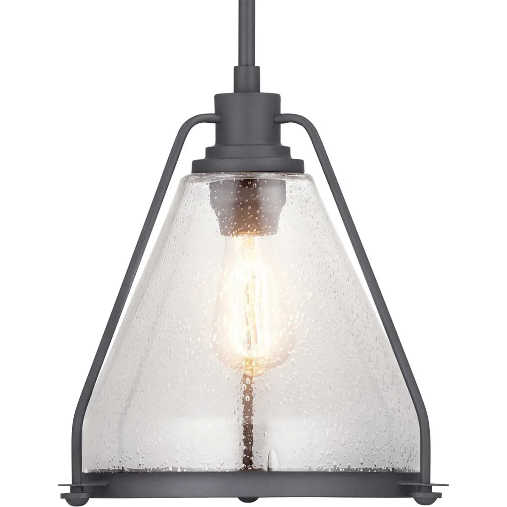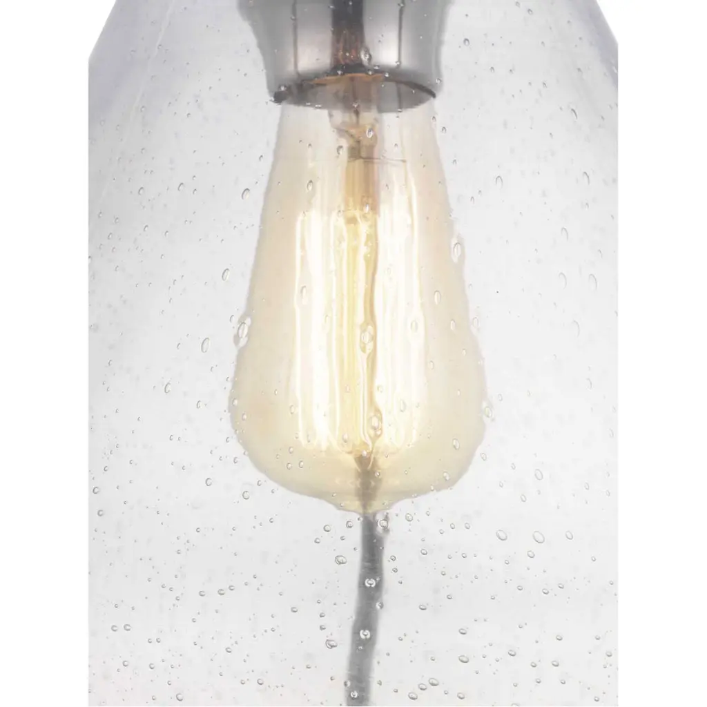 Range features a classic triangular clear seeded glass shade. The simple geometric glass is outlined with a Polished Nickel slender frame and finished with a bottom metal accent ring. Simple and stylish, this versatile style is suitable for a variety of designs, such as Modern, Farmhouse and Urban Industrial.