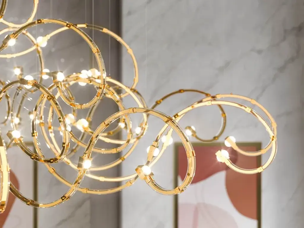 Raqam is a contemporary chandelier constructed from customisable modular combinations. It can adapt to all types of surface with no size limits.Combinations of modules can be used to create vertical suspensions, chandeliers and wall and ceiling decorations for both residential and contract use.Integrated LED lighting: 256 LED LIGHTS CRI>853000 K – 384 W 49920 NOMINAL LMRaqam is a versatile modular lighting system that can create a variety of customisable combinations extending in all directions and sizes.Galvanised metal frame covered with clear glass. LED lighting.