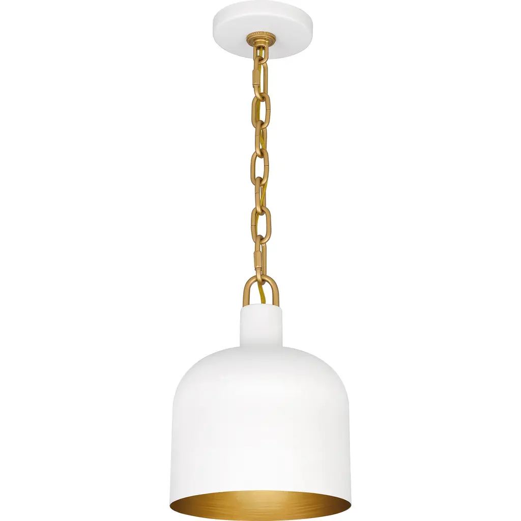 Raquel mini pendant lights offer an easy, stylish way to illuminate a kitchen island or bar area. The Raquel mini pendant features an industrial style-inspired metal shade and chunky chain design, available in all matte black or white with gold accents . Hang Raquel by itself or in groupings for maximum lighting and style.