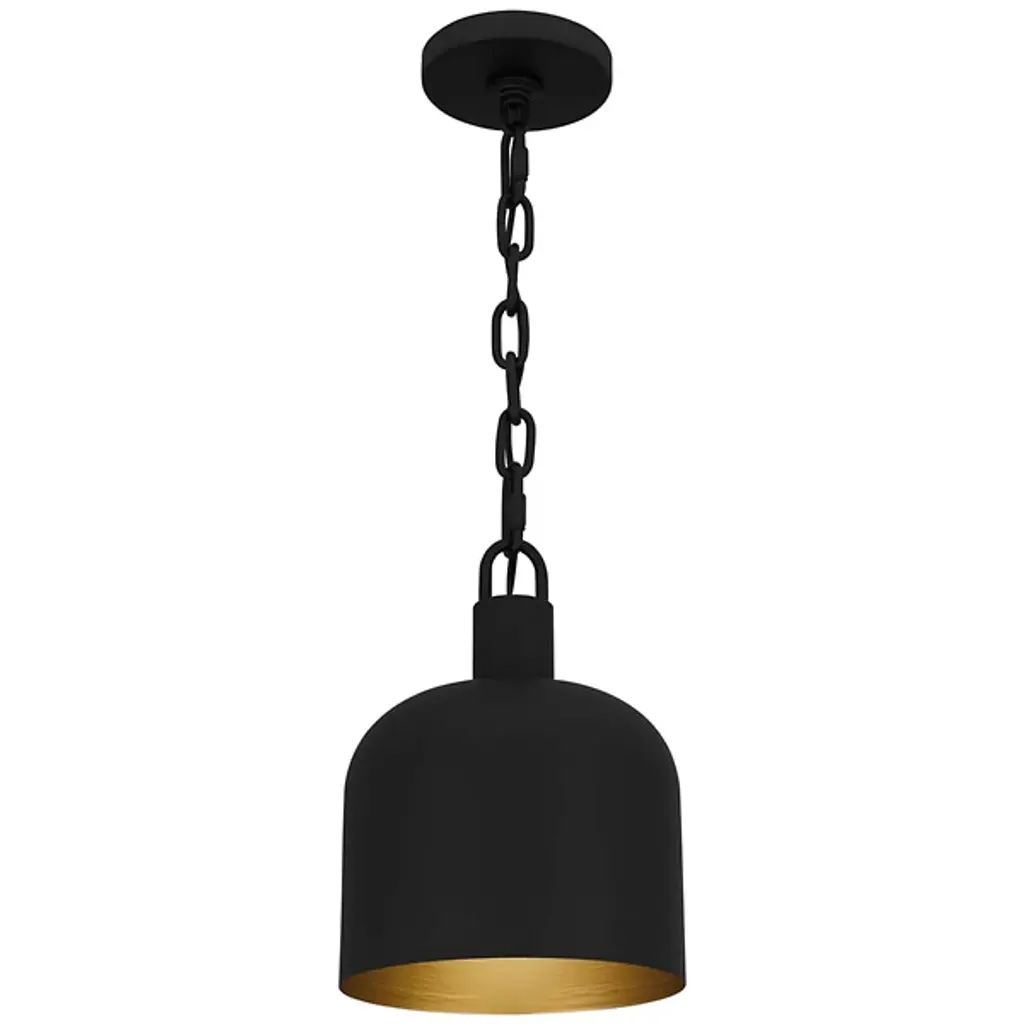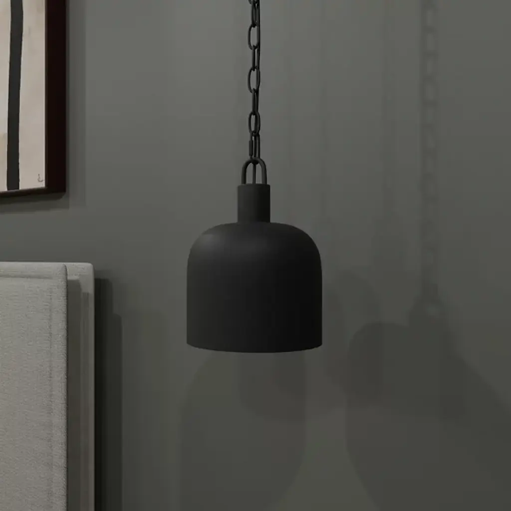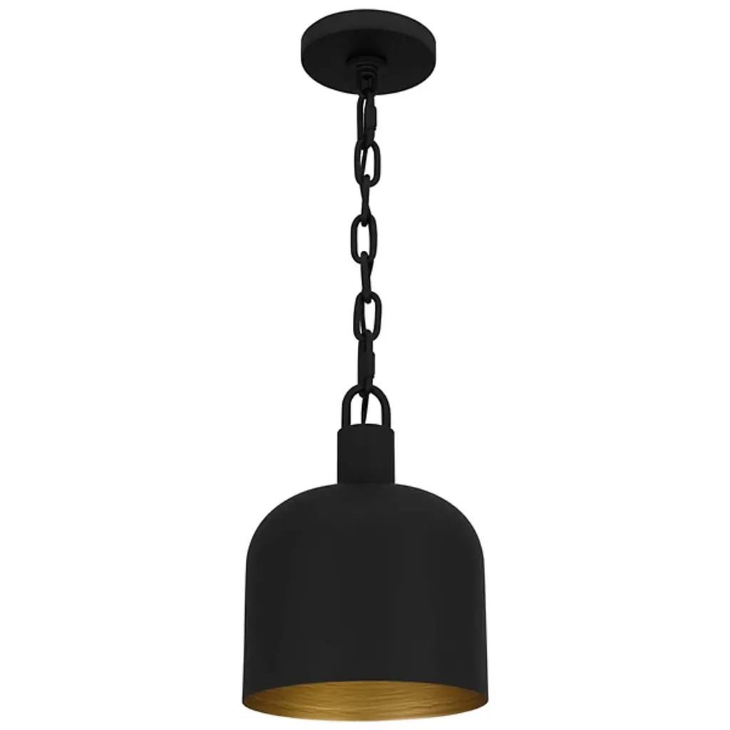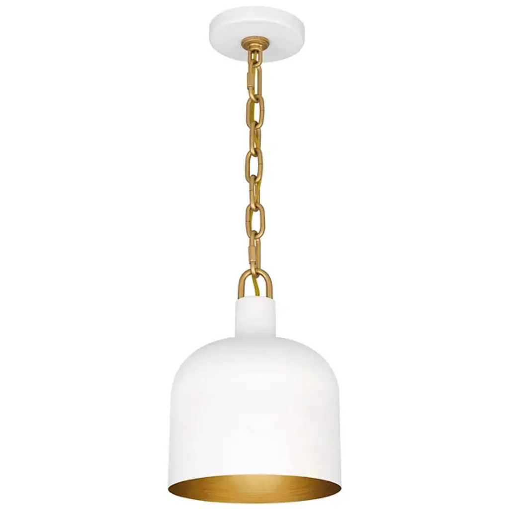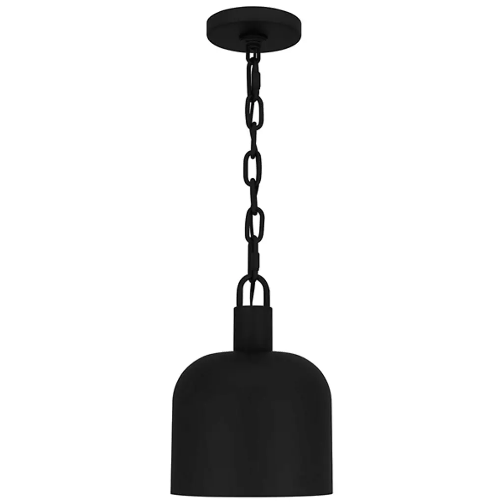 The Raquel Mini Pendant from Quoizel illuminates your kitchen island or bar area with style. This pendant features an industrial-inspired, dome-shaped metal shade and a chunky chain design, adding a rugged charm to your space. It boasts a transitional aesthetic and can hang individually for a minimalist look or in groupings for maximum impact, creating a visually stunning and well-lit environment. This pendant lets you tailor the lighting to your preference using a separately sold ELV dimmer.