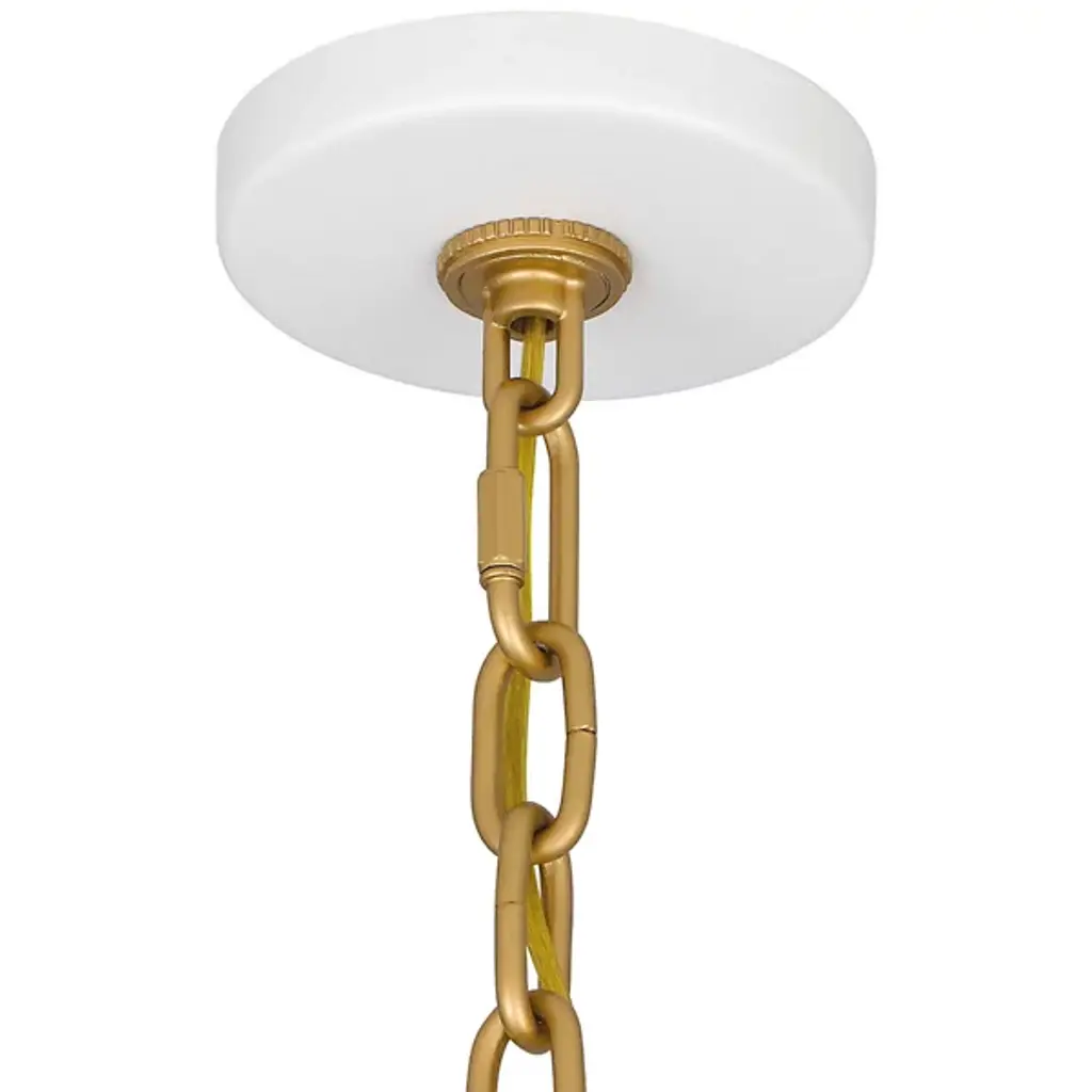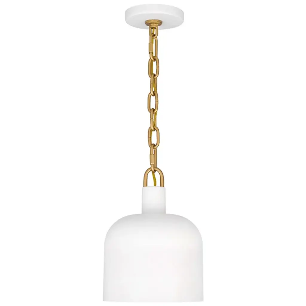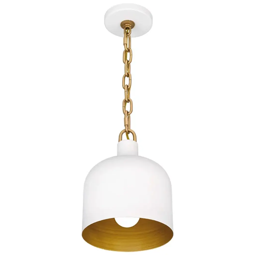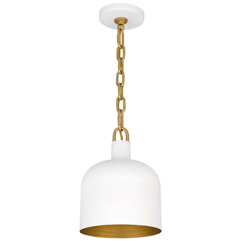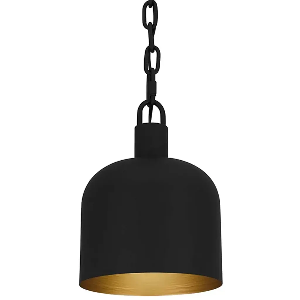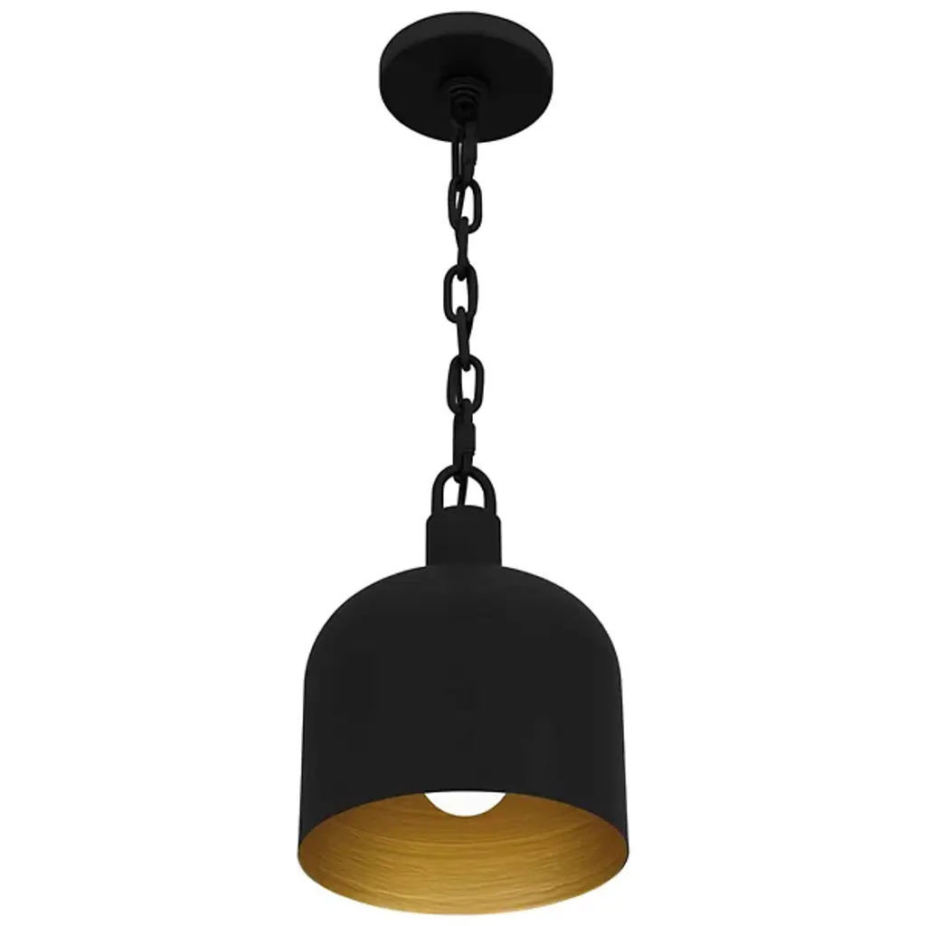 The Raquel Mini Pendant from Quoizel illuminates your kitchen island or bar area with style. This pendant features an industrial-inspired, dome-shaped metal shade and a chunky chain design, adding a rugged charm to your space. It boasts a transitional aesthetic and can hang individually for a minimalist look or in groupings for maximum impact, creating a visually stunning and well-lit environment. This pendant lets you tailor the lighting to your preference using a separately sold ELV dimmer.