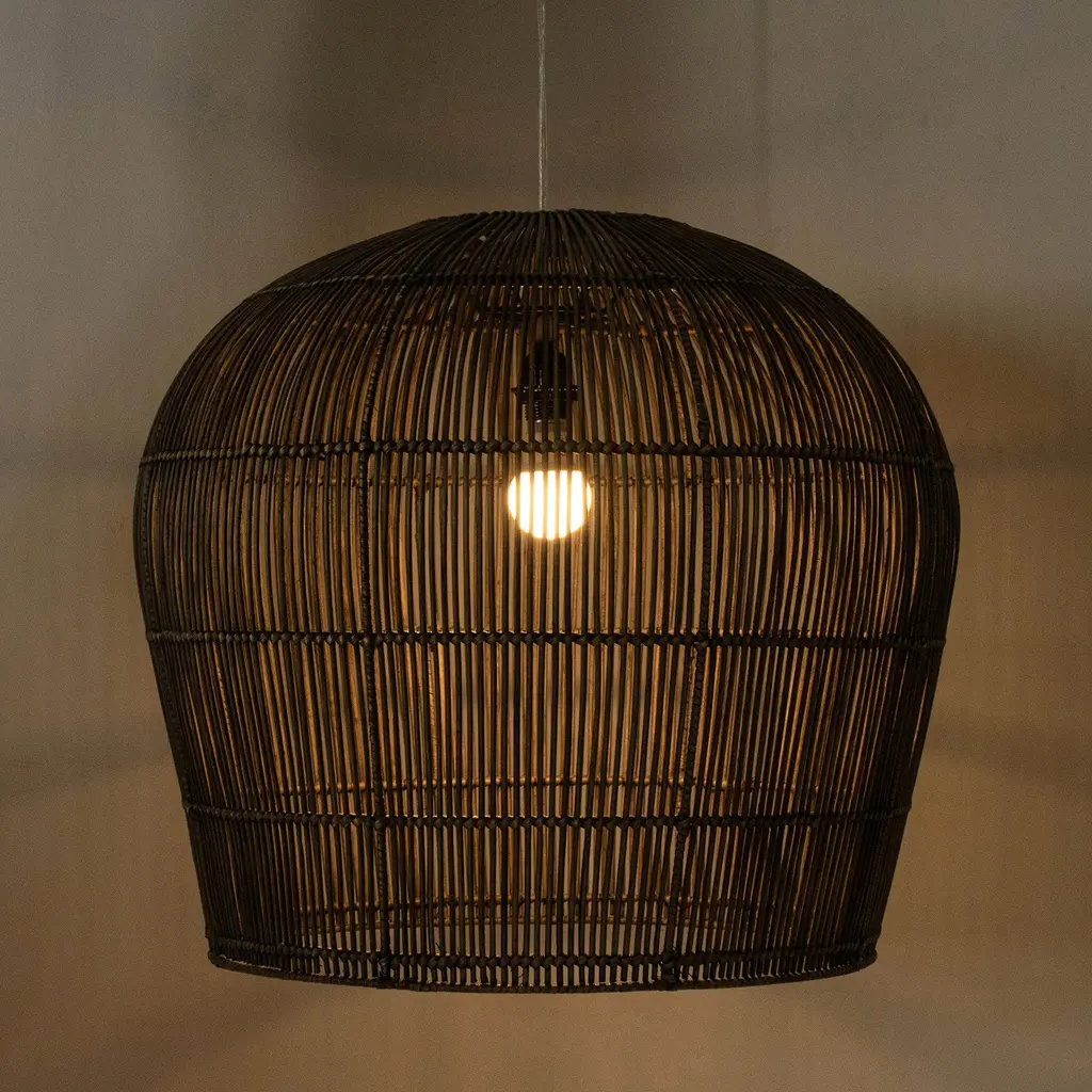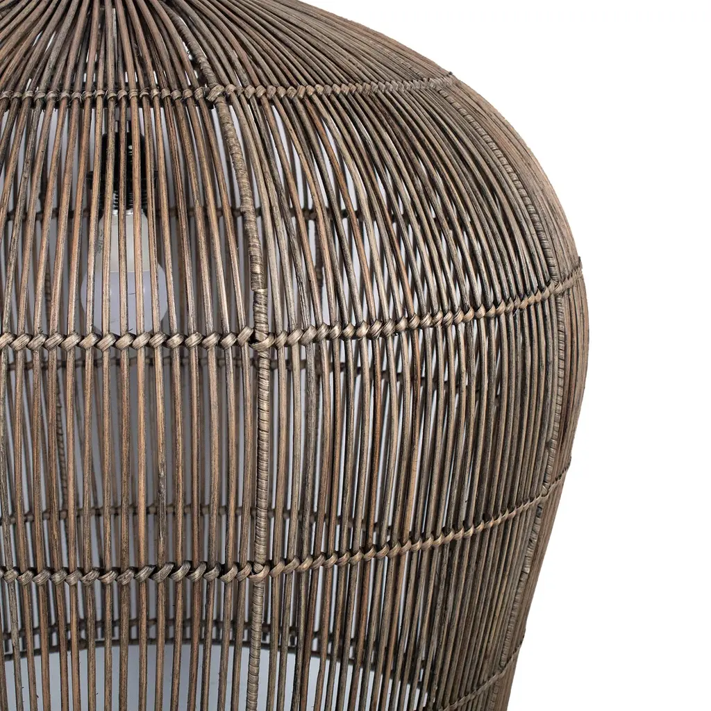 Simple and stylish, this tulip shaped pendant light is crafted from natural sustainable rattan for organic texture with a beautiful grey patina. The oversized bulb silhouette features an open weave surface texture, reminiscent of matchstick bamboo shades, that allows ambient light to filter through, for a dappled play of light and shadow. The versatile, minimalist shape and artisan texture complements a range of decor styles, from contemporary Japandi, to coastal, bohemian and even more traditional interiors.