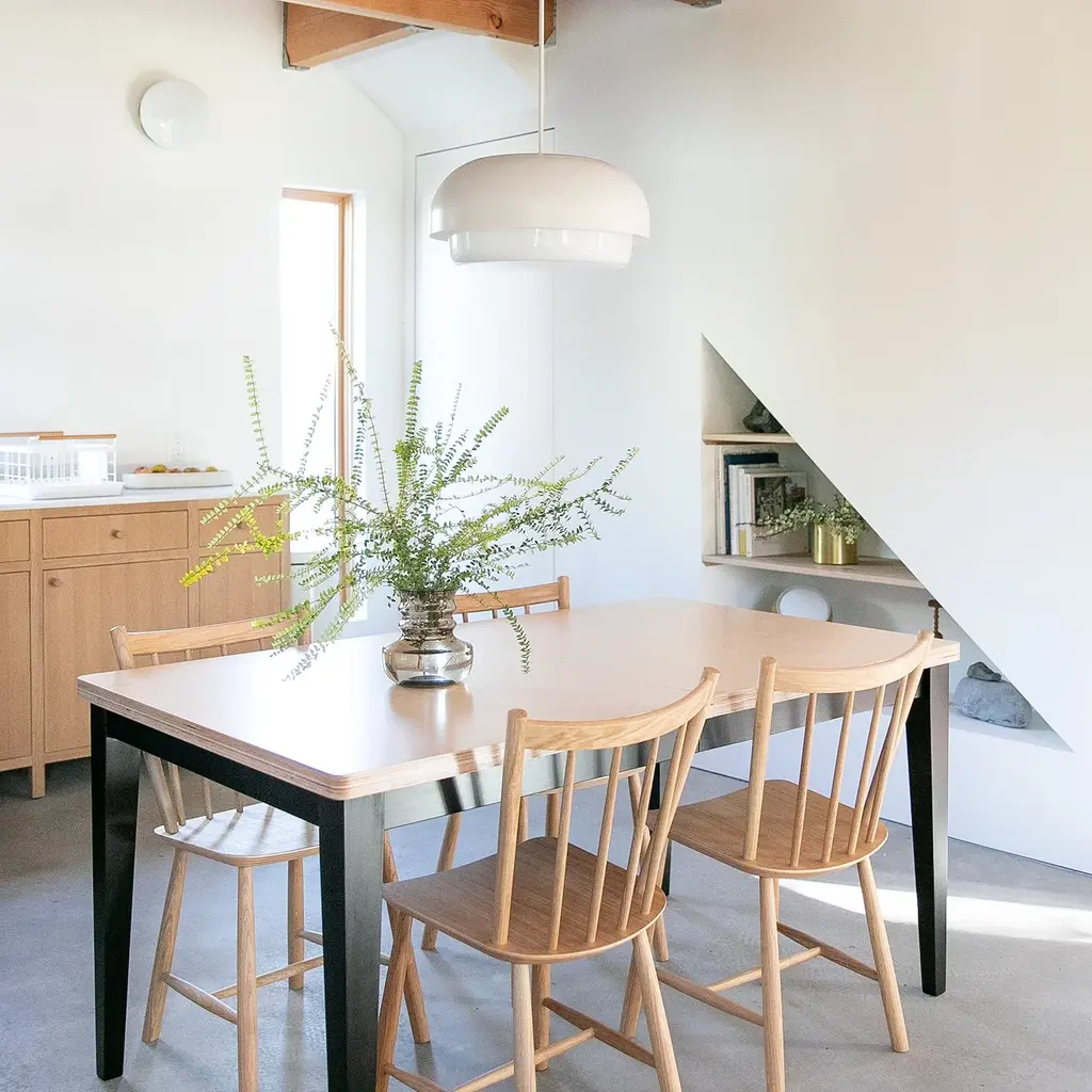 As part of our Benchmade line, Ray gets its name and inspiration from the playful yet sophisticated spirit present in all of Ray Eames's work. This iconic fixture puts a modern twist on a classic mid-century design. Its streamlined silhouette and joyful color palette—each one is painted on our factory’s fourth floor—lend itself well to an array of interiors. Each fixture is paired with a glass diffuser to gently filter light while a custom lever makes changing out the lightbulbs easy and effortless. Read our guides on how to hang pendants and chandeliers and how to layer different types of lighting. Shop the Ray Lighting Collection