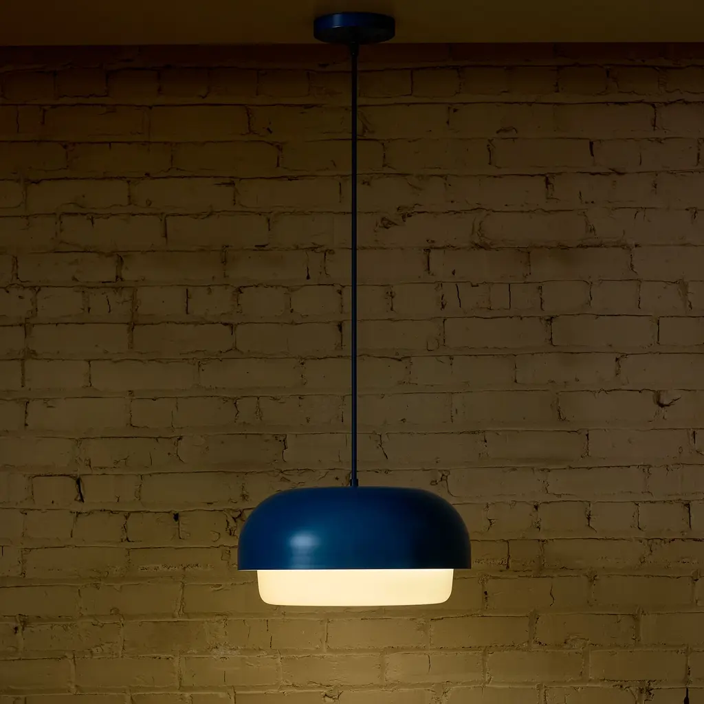 As part of our Benchmade line, Ray gets its name and inspiration from the playful yet sophisticated spirit present in all of Ray Eames's work. This iconic fixture puts a modern twist on a classic mid-century design. Its streamlined silhouette and joyful color palette—each one is painted on our factory’s fourth floor—lend itself well to an array of interiors. Each fixture is paired with a glass diffuser to gently filter light while a custom lever makes changing out the lightbulbs easy and effortless. Read our guides on how to hang pendants and chandeliers and how to layer different types of lighting. Shop the Ray Lighting Collection