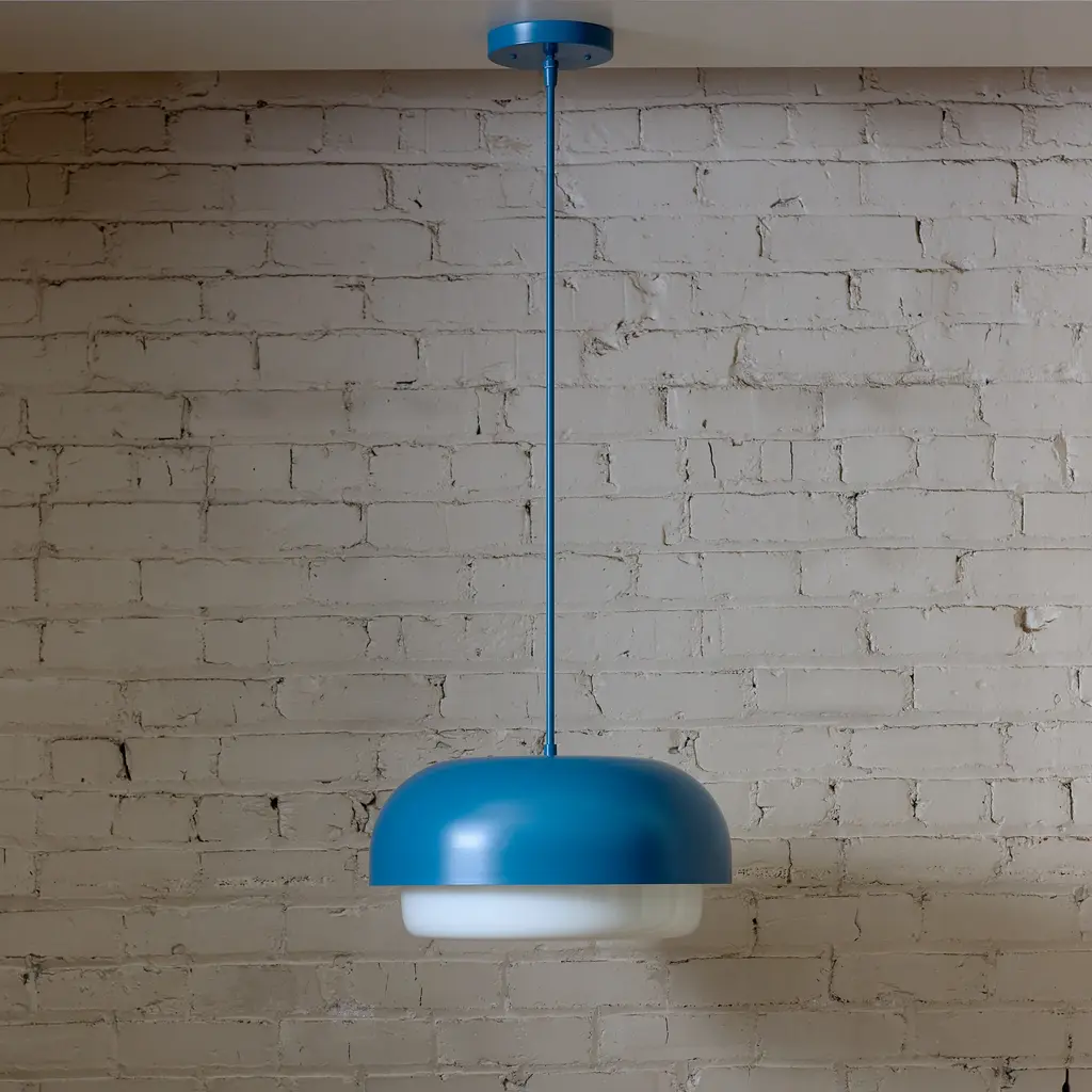 As part of our Benchmade line, Ray gets its name and inspiration from the playful yet sophisticated spirit present in all of Ray Eames's work. This iconic fixture puts a modern twist on a classic mid-century design. Its streamlined silhouette and joyful color palette—each one is painted on our factory’s fourth floor—lend itself well to an array of interiors. Each fixture is paired with a glass diffuser to gently filter light while a custom lever makes changing out the lightbulbs easy and effortless. Read our guides on how to hang pendants and chandeliers and how to layer different types of lighting. Shop the Ray Lighting Collection