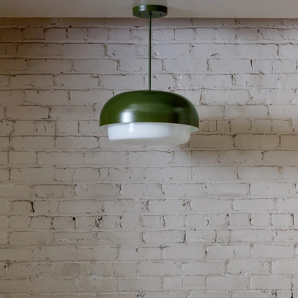 As part of our Benchmade line, Ray gets its name and inspiration from the playful yet sophisticated spirit present in all of Ray Eames's work. This iconic fixture puts a modern twist on a classic mid-century design. Its streamlined silhouette and joyful color palette—each one is painted on our factory’s fourth floor—lend itself well to an array of interiors. Each fixture is paired with a glass diffuser to gently filter light while a custom lever makes changing out the lightbulbs easy and effortless. Read our guides on how to hang pendants and chandeliers and how to layer different types of lighting. Shop the Ray Lighting Collection