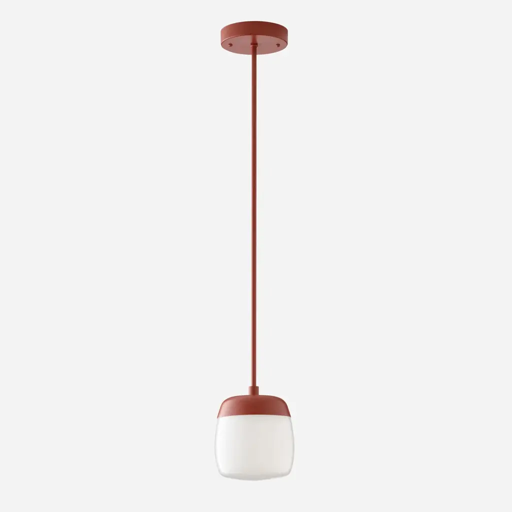 A celebration of form and color, The Ray 6” Pendant was inspired by the playful yet sophisticated spirit present in all of Ray Eames’ designs. An assortment of elegantly elevated primary hues pay homage to the rich color palette of the 1960s while its glass diffuser gently filters light to achieve the perfect glow. Ideal for entryways, breakfast nooks, or installed in multiples over a kitchen island, this radiant collection is sure to brighten up your space in more ways than one. Assembled in our Portland, Ore. factory using ethically sourced domestic and global components. A Schoolhouse Original. Shop the Ray Lighting CollectionRead our guides on how to hang pendants and chandeliers and how to layer different types of lighting.Overall: 16" - 72" H x 6" W x 6" DCanopy: 1" H x 5" W x 5" DShade: 6.25" H x 5.5" W x 5.5" D