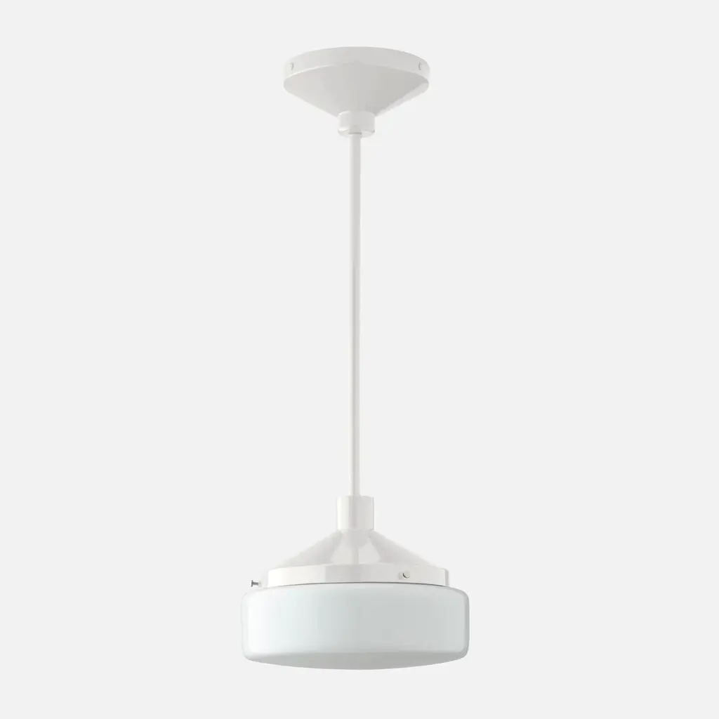 As part of our Benchmade line, Ray gets its name and inspiration from the playful yet sophisticated spirit present in all of Ray Eames's work. This iconic fixture puts a modern twist on a classic mid-century design. Its streamlined silhouette and joyful color palette—each one is painted on our factory’s fourth floor—lend itself well to an array of interiors. Each fixture is paired with a glass diffuser to gently filter light while a custom lever makes changing out the lightbulbs easy and effortless.Read our guides on how to hang pendants and chandeliers and how to layer different types of lighting. Shop the Ray Lighting Collection