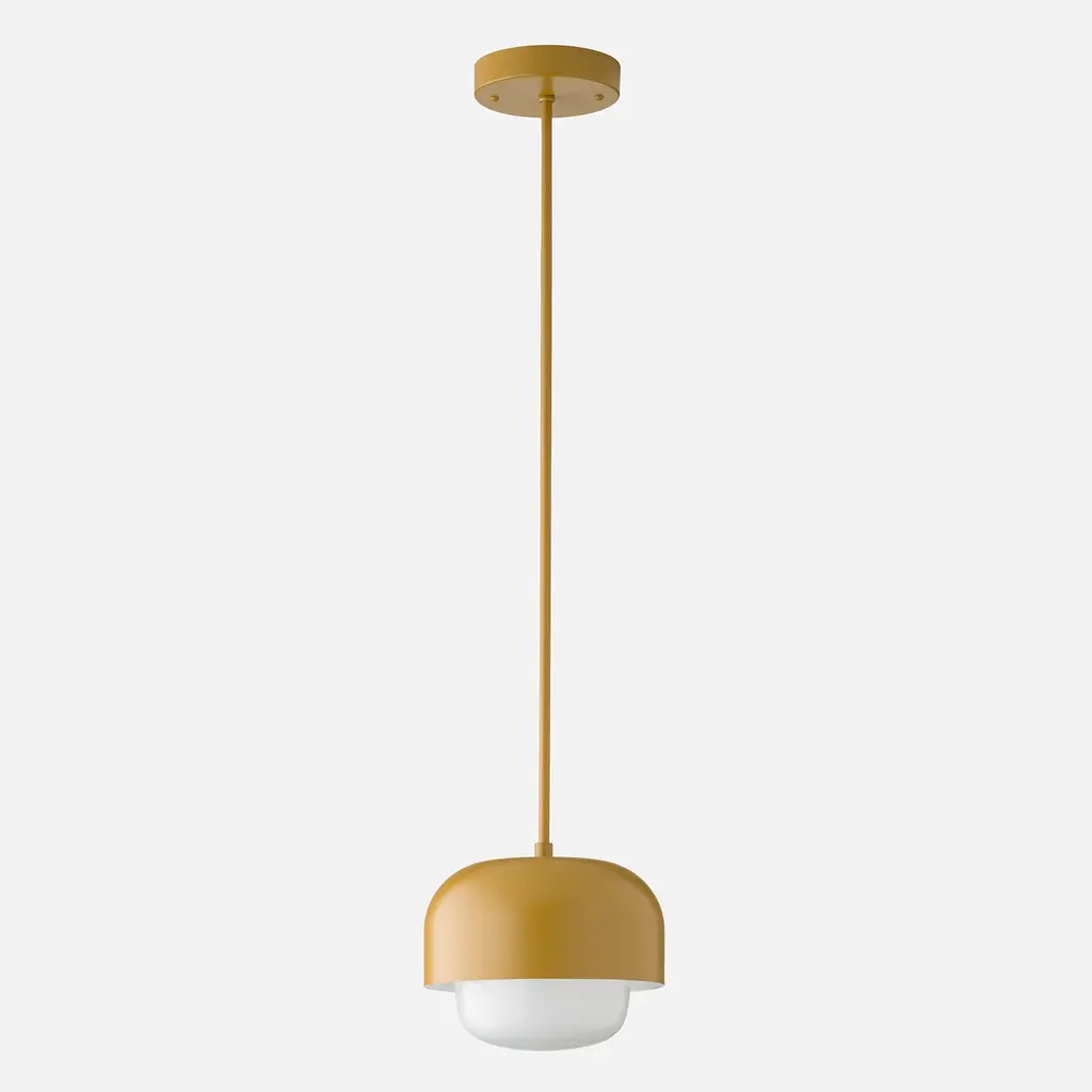 As part of our Benchmade line, Ray gets its name and inspiration from the playful yet sophisticated spirit present in all of Ray Eames's work. This iconic fixture puts a modern twist on a classic mid-century design. Its streamlined silhouette and joyful color palette—each one is painted on our factory’s fourth floor—lend itself well to an array of interiors. Each fixture is paired with a glass diffuser to gently filter light while a custom lever makes changing out the lightbulbs easy and effortless.Read our guides on how to hang pendants and chandeliers and how to layer different types of lighting. Shop the Ray Lighting Collection